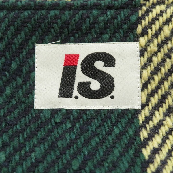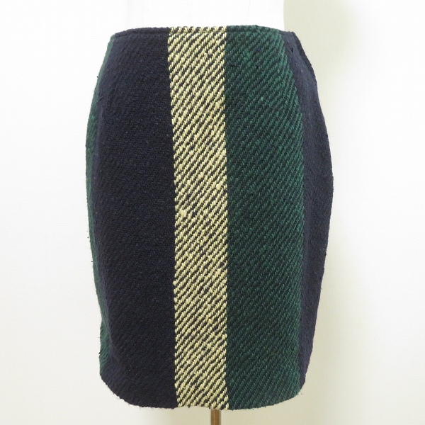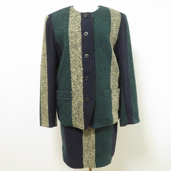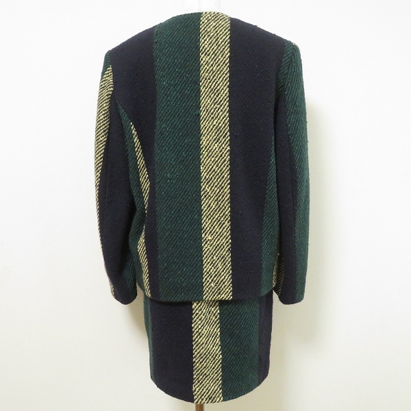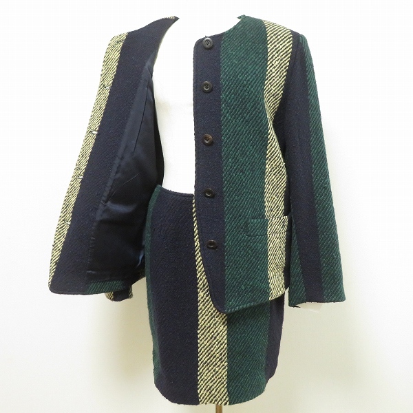 #wpc イッセイミヤケインターナショナル I.S. スカートスーツ 9 紺 緑 黄 ツイード ストライプ ヴィンテージ レディース [965414]