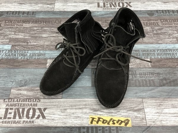 MINNETONKA ミネトンカ レディース フリンジ インナーヒール ショートブーツ 黒 です。