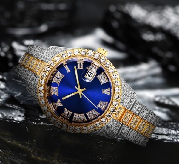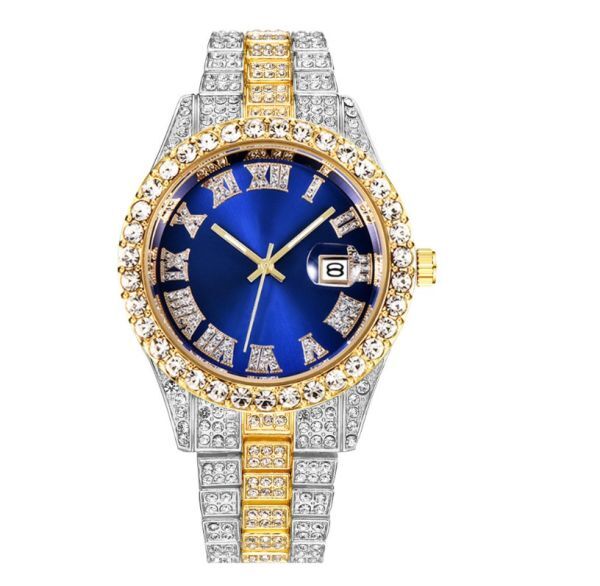 新品 18kゴールドGP ダイヤモンドcz 腕時計ブレスレットバングルウォッチ 87g ブルー シルバー ゴールドライン 男女兼用 メンズレディース 上質 質感 高品質 高級感 大人気 格安 送料無料