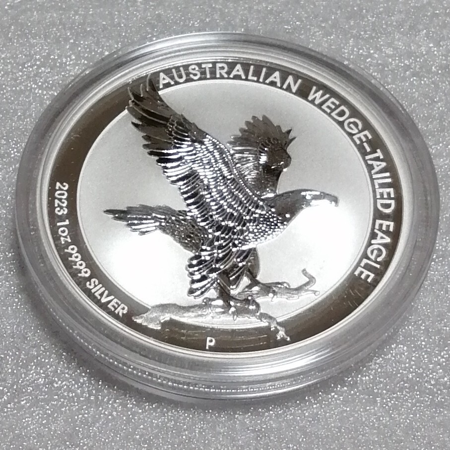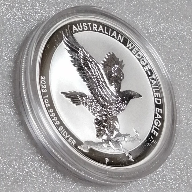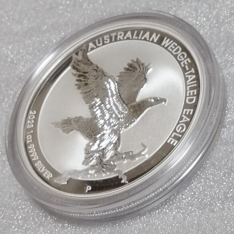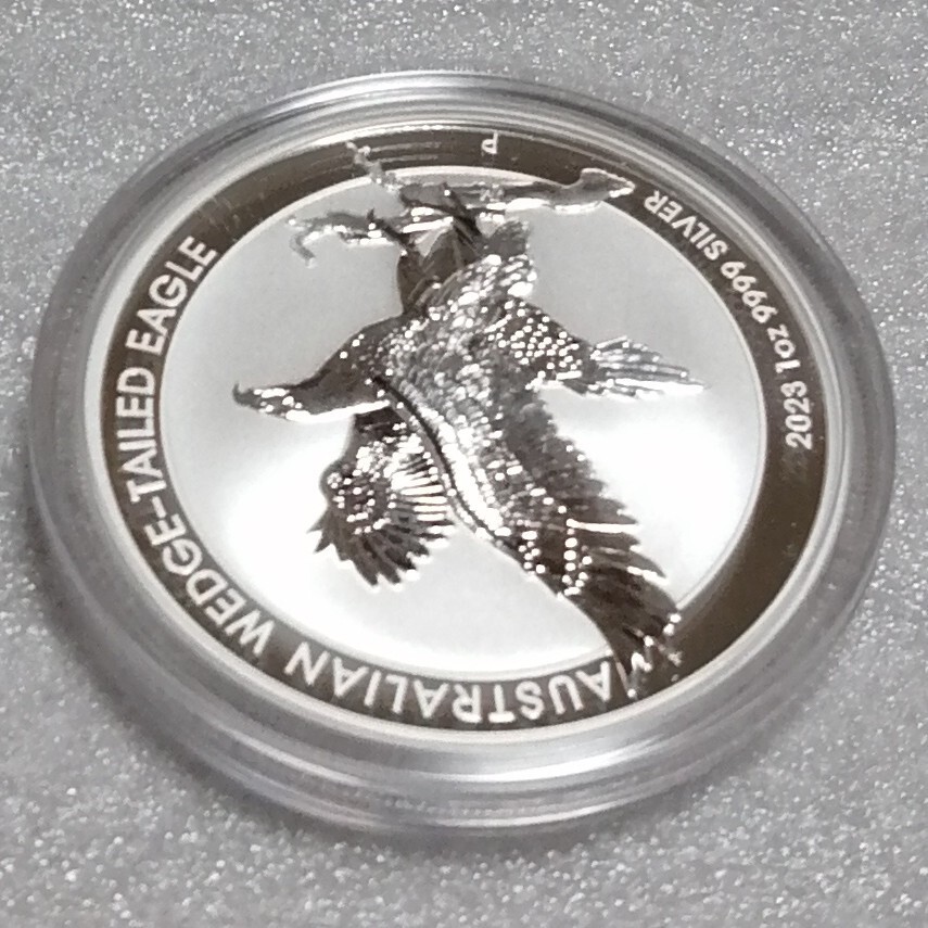 重量1トロイオンス。直径40.6ミリ。純度.9999。発行枚数50000。人気のオナガイヌワシ銀貨。オリジナルカプセル入り(1度も開けてません)。オーストラリアの造幣局パースミント発行。