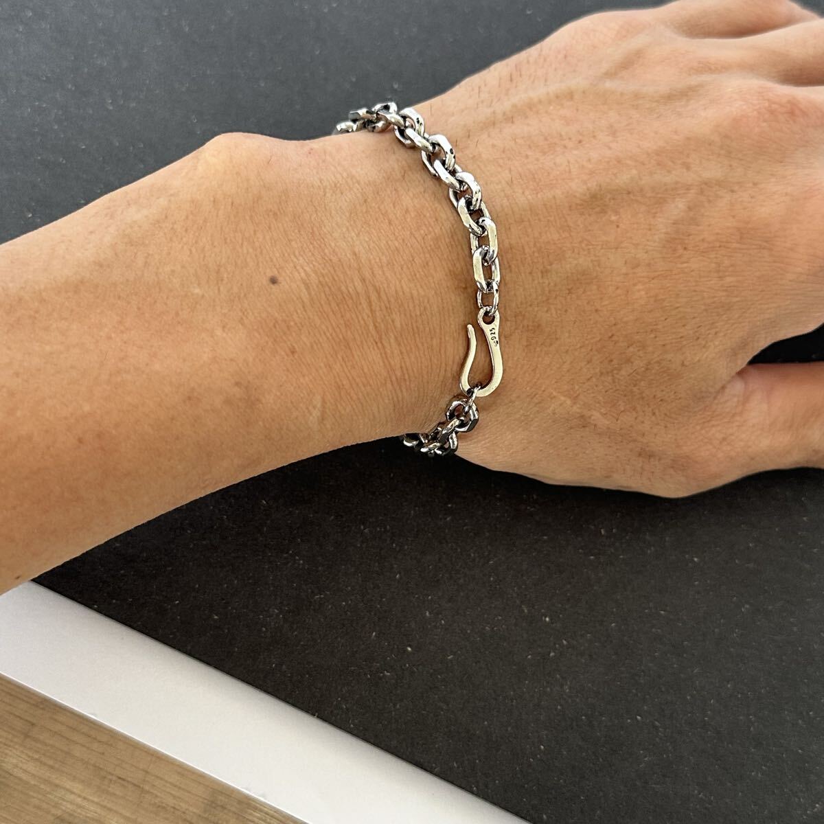 #メンズブレスレット #S925刻印 #チェーンブレスレット #シルバーカラー #フックブレスレット #チェーンアクセサリー #高級感 #ファッション小物 #プレゼント #ギフト #シンプルデザイン #重厚感 #シルバーアクセ