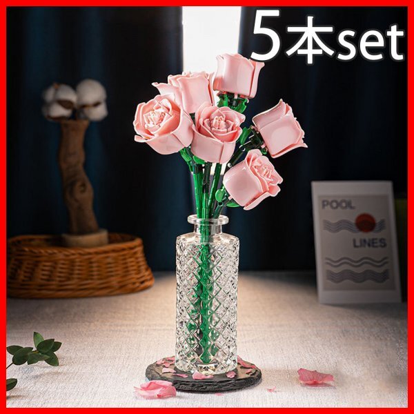 インテリアやプレゼントなどにも使える薔薇バラのデザインのブロック玩具です。