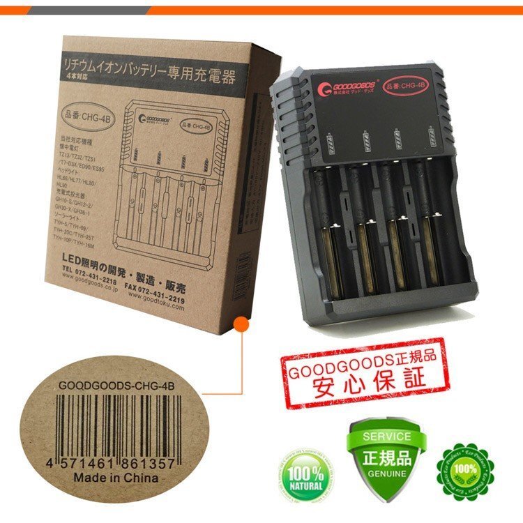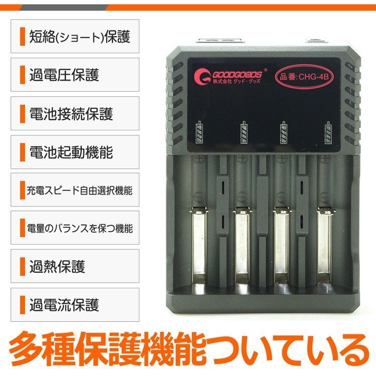 GODGOODS 充電器 18650型電池専用 四本同時充電可 マルチ充電器 18650型リチウムバッテリー 送料無料 CHG-4B