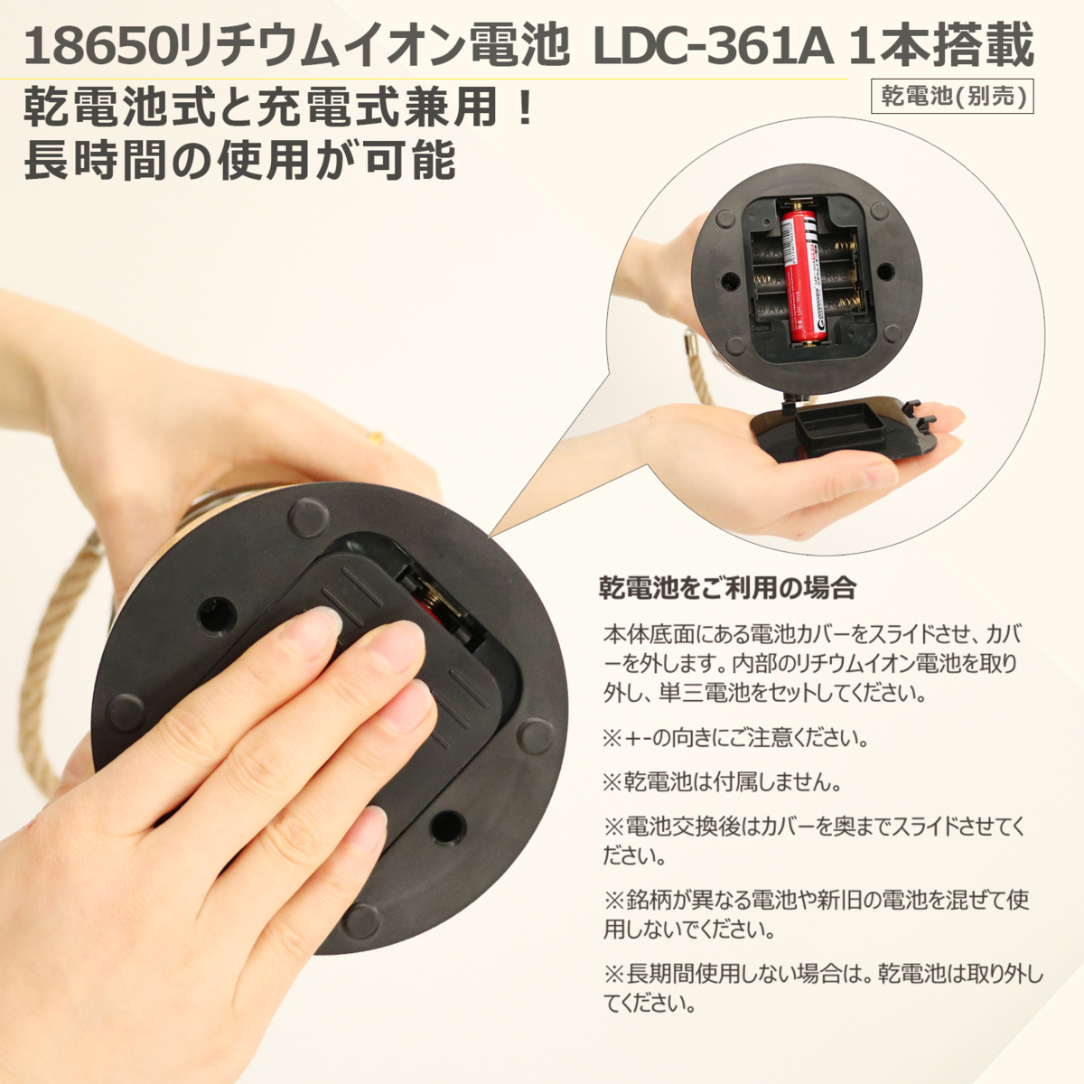 | セット内容 | ライト本体、リチウムイオン電池 LDC-361A *1本、USB充電ケーブル、取扱説明書、保証書 | ||
