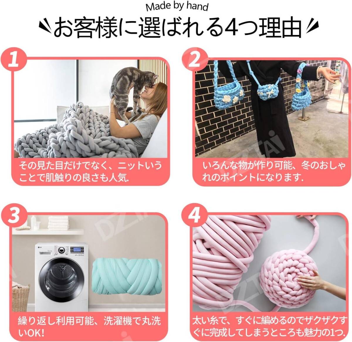 • 【極太】道具を使わず手だけで編み物ができる太さの毛糸