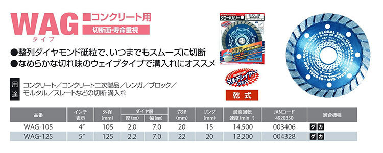モトユキ/GLOBAL SAW ダイヤモンドカッター コンクリート用 WAG-105