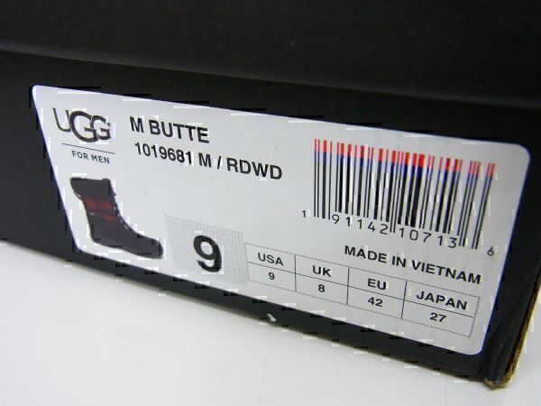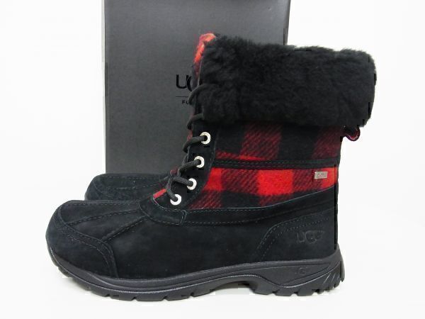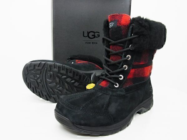 ★正規 UGG アグ M BUTTE エムビュートショートブーツVibram US9 27cm【1019681-RDWD-09】ブラック黒レッド赤【本物保証】ムートンシューズ