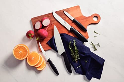 トラモンティーナ 三徳包丁 プレナス 150mm 黒 ステンレス 牛刀 小型 ナイフ 食洗機対応 超軽量 ブラジル製 23443/106 TRA