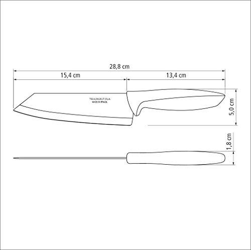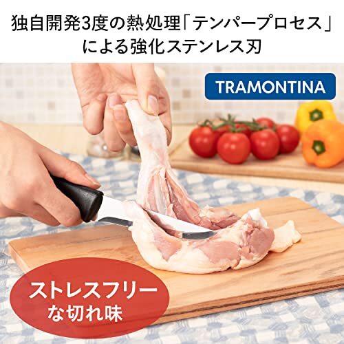 100年を超える歴史を持つブラジルキッチンウェアメーカー最大手「TRAMONTINA」プレナスシリーズの小型三徳包丁(15cm)。 軽量かつストレスフリーな切れ味が特徴のハイバリューシリーズです。 ステンレス鋼の刃とポリプロピレンハンドルは握りやすく、調理の際やテーブルウェアでのご使用にも最適。 食器洗浄機にも対応しておりますので、毎日のご使用にもぴったりです。