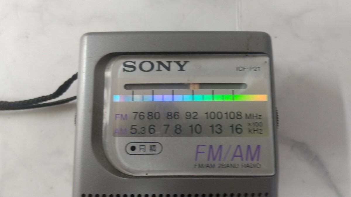 K5379 SONY ICF-P21 FM/AM ラジオ ハンディポータブルラジオ 簡易確認&簡易清掃&ラジオ受信& 音出しOK 現状品 送料無料