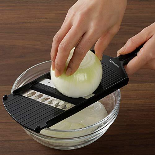 一つで野菜のスライスと太めの千切り(しりしり)が作れます。 キャベツやきゅうりのスライス、きんぴら料理などいろいろな野菜のささがきに。 食器洗い乾燥機対応。