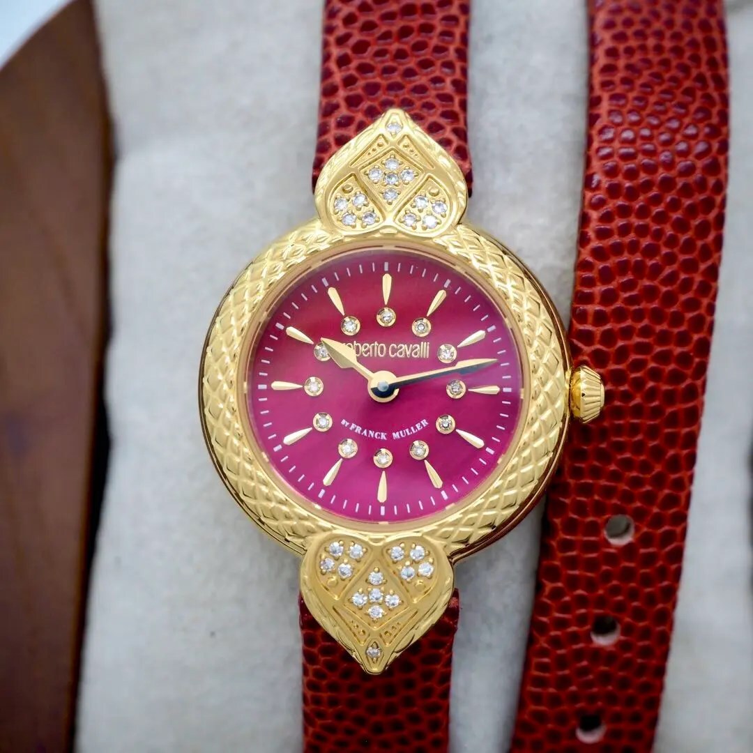 551【美品】ロベルトカヴァリ フランクミュラー 時計 スネーク ワインレッド