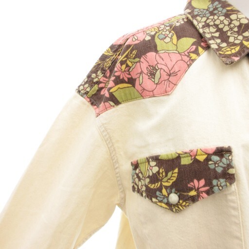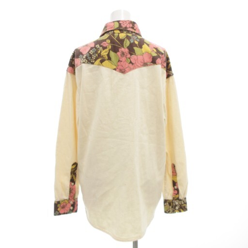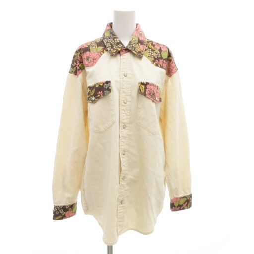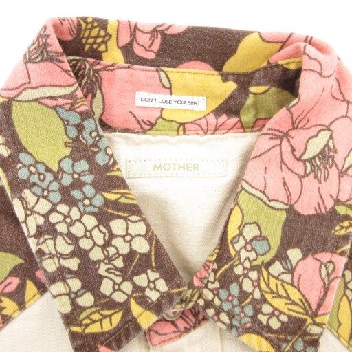マザー MOTHER フラワープリントドッキングシャツ ウエスタン 長袖 XS アイボリー 茶 ブラウン /GV ■GY19 レディース
