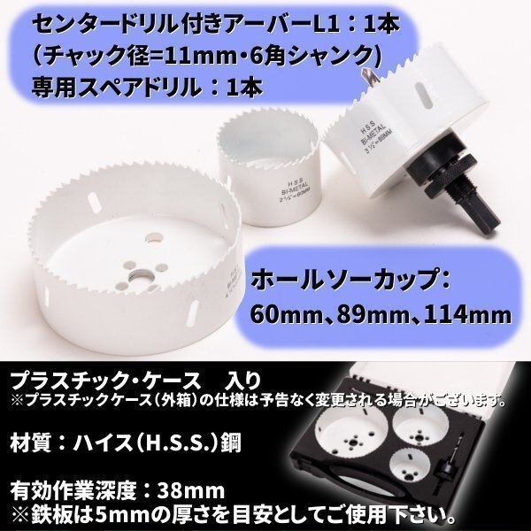 ホルソー 大口径 セット バイ メタル ホールソー 60mm 89mm 114mmVP100 VP75 VP50 HSS製 ステンレス 鉄板 サイディング 塩ビパイプ 配管