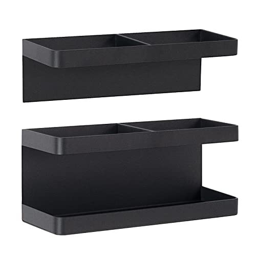 マグネット傘立て ブラック スリム おしゃれ 水受けトレイ付き 多機能傘収納 玄関ドア壁掛け コンパクト 傘立て 玄関扉収納 (ブラック)