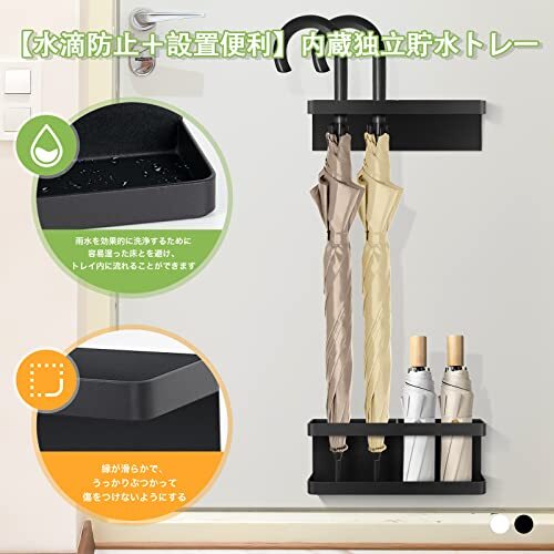 【水滴防止+設置便利】内蔵独立貯水トレー、雨水を効果的に洗浄するために容易湿った床とを避け、トレイ内に流れることができます。効果的な防水傘の水滴、清潔で衛生的です。お水がたまった際などにも簡単に外せます。また再度の取り付けも簡単です。 傘立て簡単にインストールするには、直接など、セキュリティドア、鉄などの鉄製品、冷蔵庫、に取り付けることができます。
