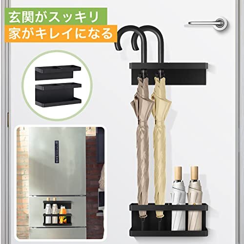 ブラック マグネット傘立て ブラック スリム おしゃれ 水受けトレイ付き 多機能傘収納 玄関ドア壁掛け コンパクト 傘立て 玄関扉