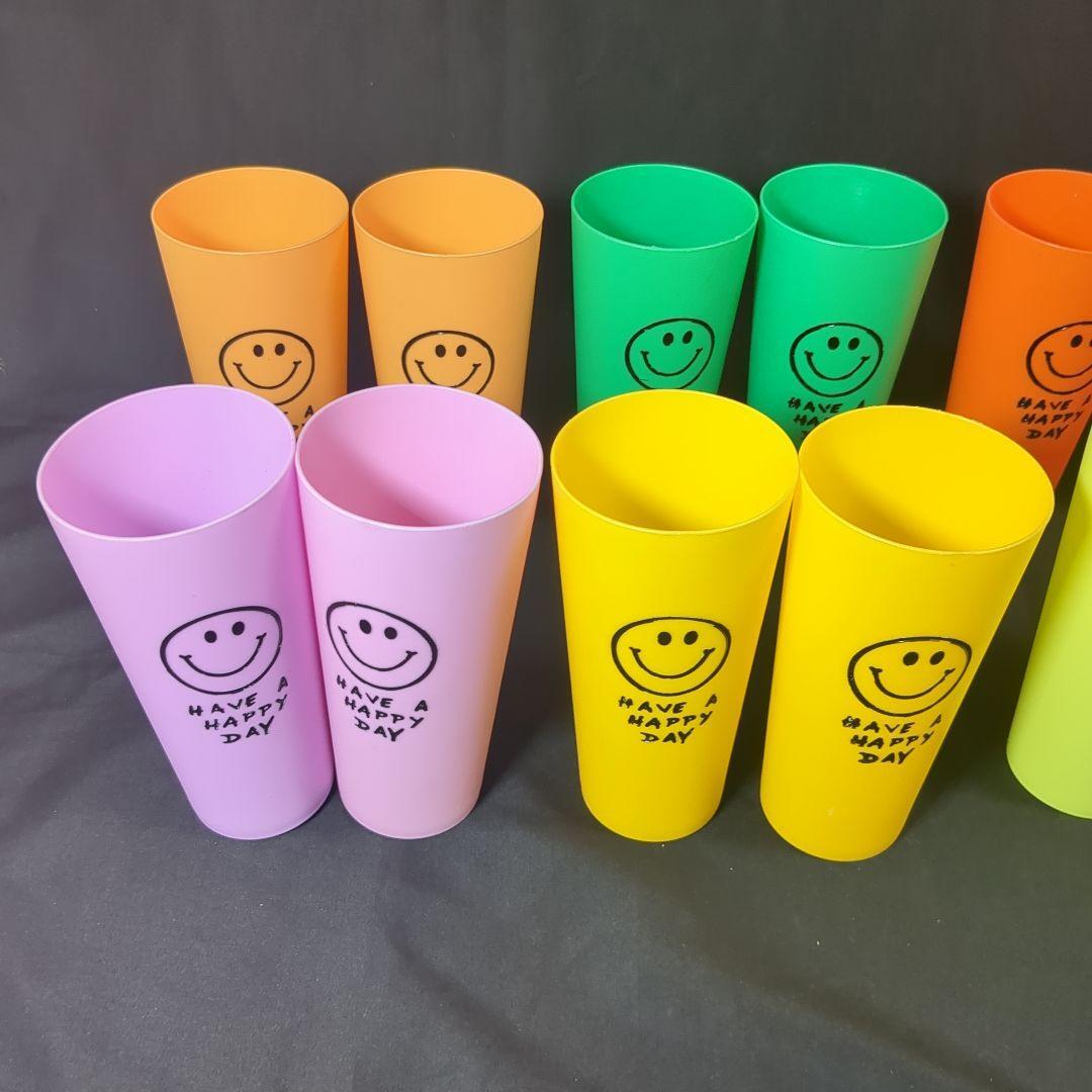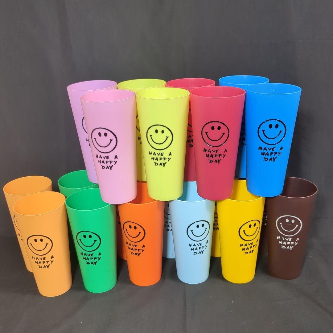 【送料無料】スマイル プラスチックカップ 中古 10色20個セット