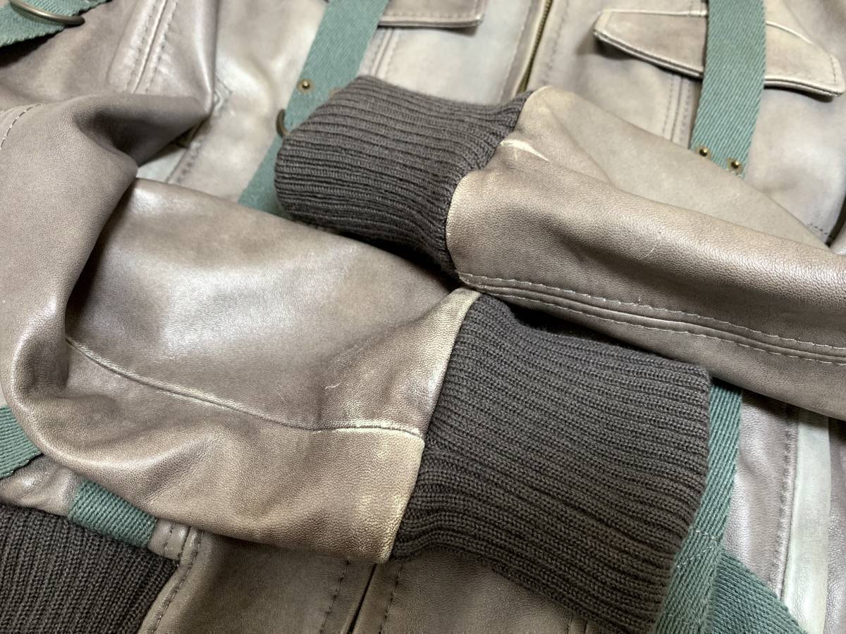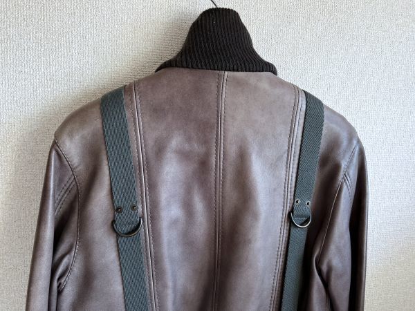 表記サイズ:46 肩幅41身幅48袖丈68着丈63 色:ブラウン系 素材:ラムスキン100% 袖口にスレがあります。目立った汚れやダメージはありません