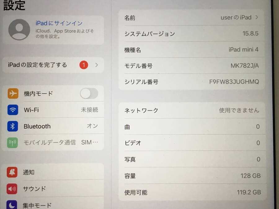 Apple A1550 iPad mini 4 128GB Cellularモデル■一部保証品