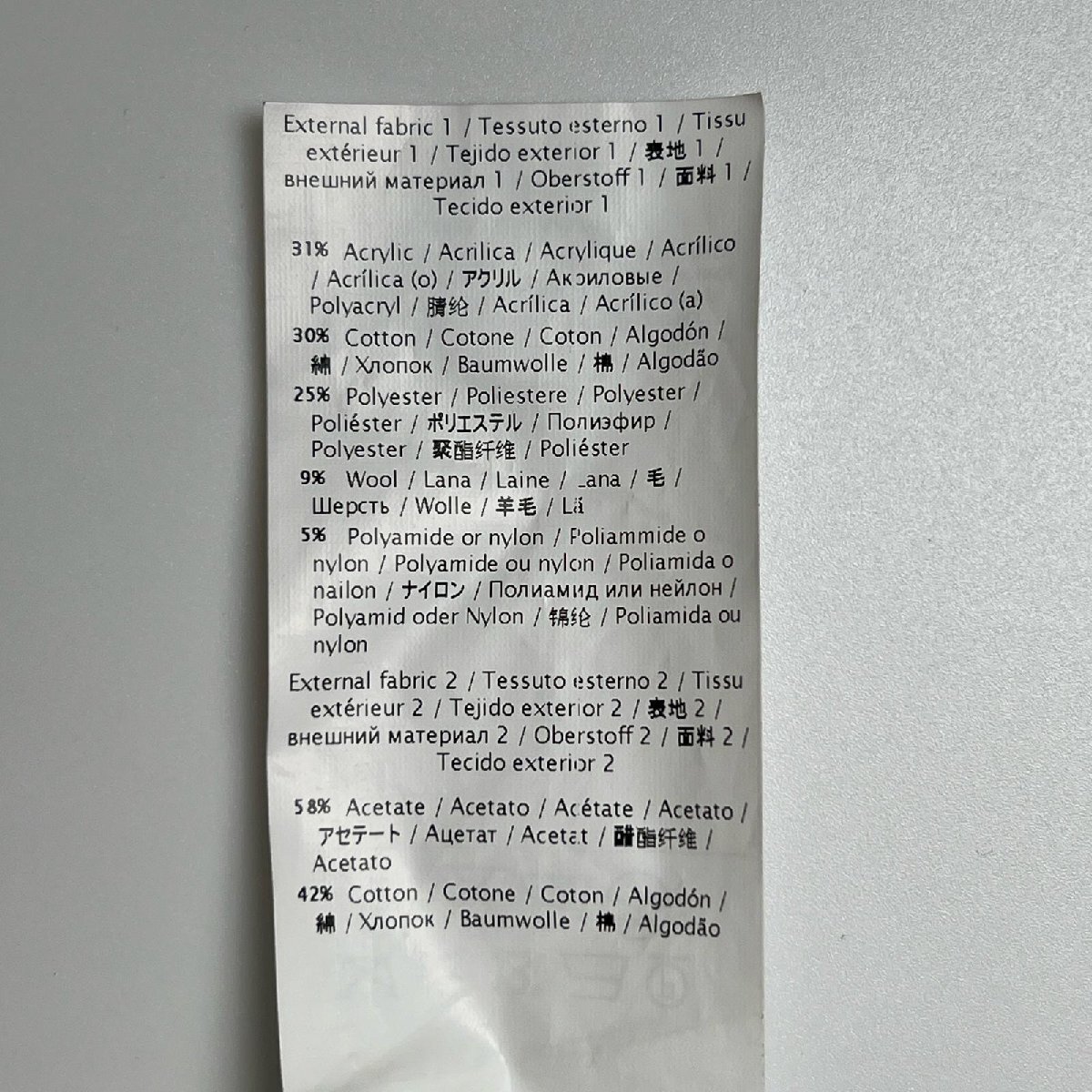 | 素材 (material) | 表地:アクリル31% :コットン30% :ポリエステル25% :ウール9% :ナイロン5% 裏地:アセテート58% :コットン42% | ||||||||||||||||