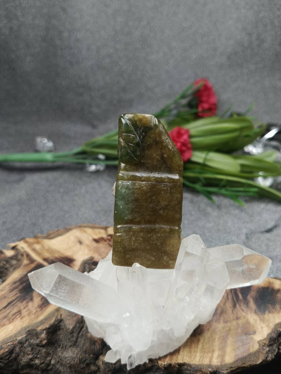本翡翠ジェダイト(硬玉)の歴史では日本が最も古く、縄文時代から勾玉として使用されてきました。翡翠は、『忍耐、調和、飛躍』を表す鉱物とされ、持つ人に大いなる叡智を授け、素晴らしい人徳を与えてくれるといわれています。落ち着いた冷静さと揺るぎない忍耐力を養い、災いや不運から持ち主の身の安全を守ってくれるでしょう。不安で落ちつかない夜にも効果を発揮し、持ち 主に平和な眠りをもたらしてくれるともいわれています。冷静さや沈着さを高めてくれるため、自ら災害に巻き込まれることも防いでくれるでしょう。また、東洋では古来より『あらゆる成功と繁栄』を象徴する石として大切にされてきました。秘めた能力を開花させ、夢や目標を達成させる心強いサポートをしてくれるといわれています。5月の誕生石です。
