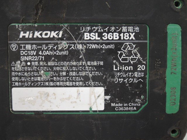 | HiKOKI ハイコーキ マルチボルトバッテリー BSL36B18X 急速充電器 UC18YDL2 セット 通電確認済/中古品 | ||||