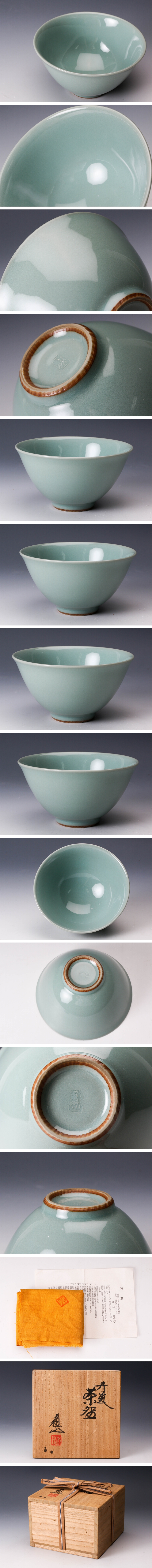 【佳香】三代 諏訪蘇山 青瓷 茶碗 共箱 共布 栞 茶道具 本物保証