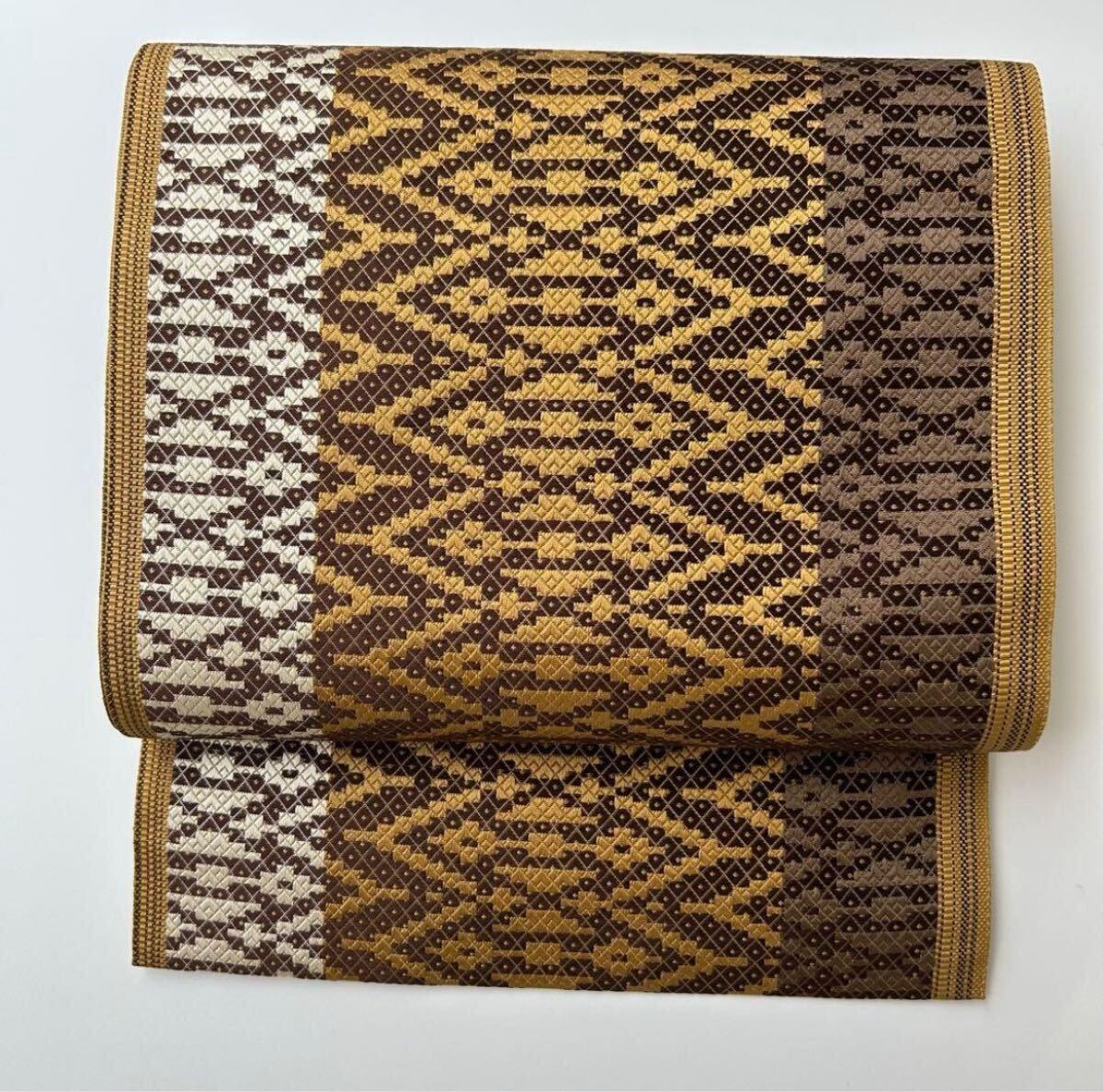 【楓】博多織 名古屋帯 正絹 幾何学 行きな織 八寸 KU-6587