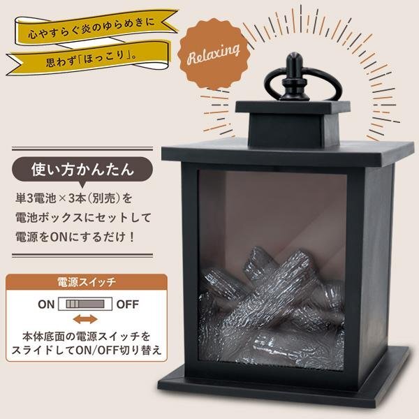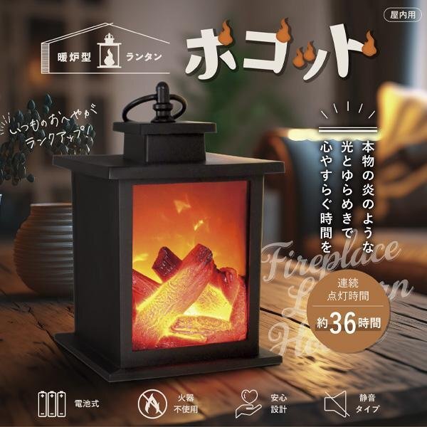 思わず「ほっこり」する電池式の暖炉型ランタンです。