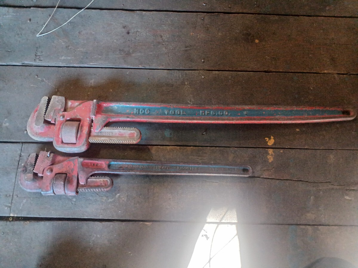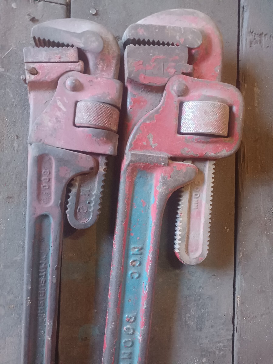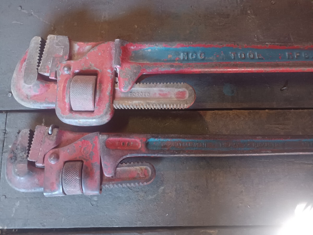 mcc900mm三菱600mmパイプレンチセットです。不具合なく使ってました。中古品になりますので3n120サイズプチプチ梱包発送です。