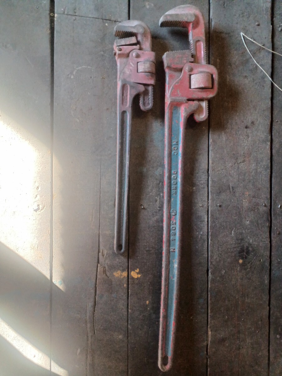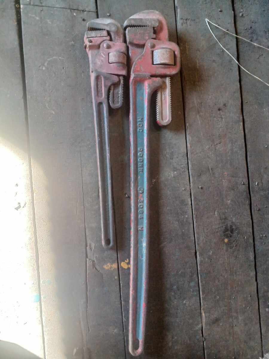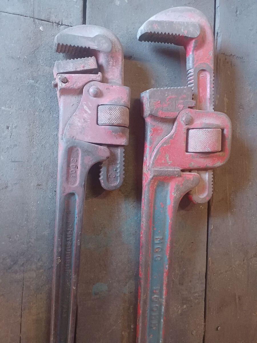 mcc900mm三菱600mmパイプレンチセットです。不具合なく使ってました。中古品になりますので3n120サイズプチプチ梱包発送です。