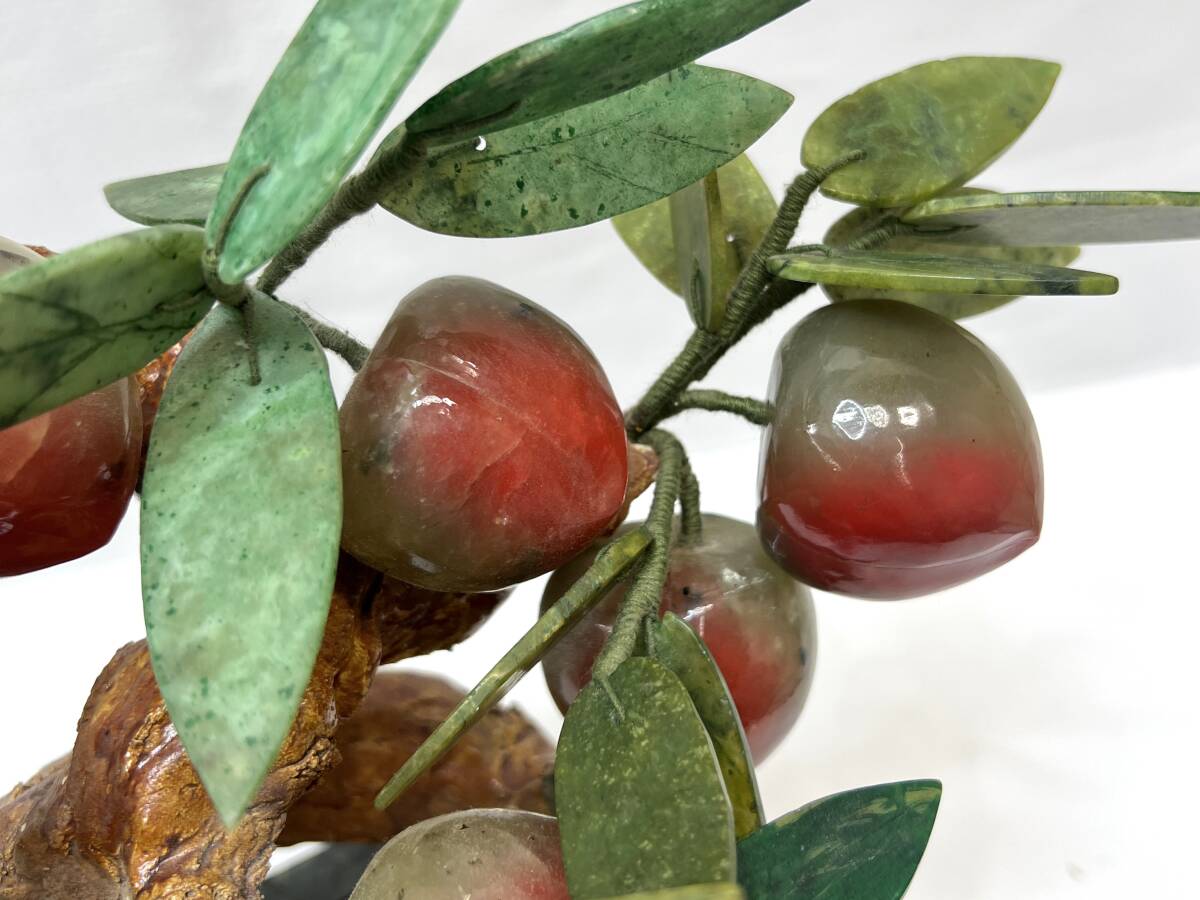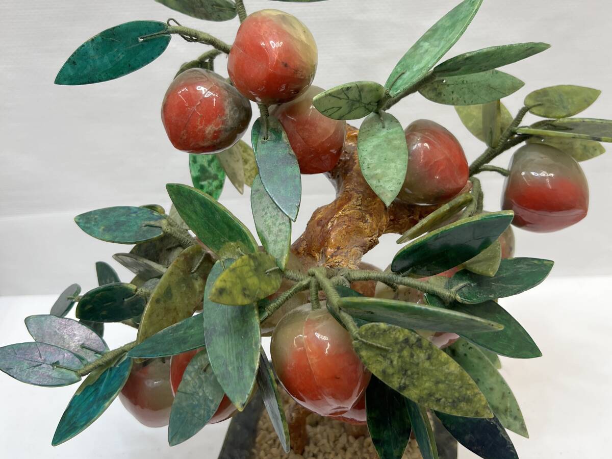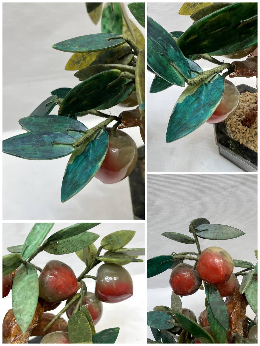 中国美術 翡翠 桃樹玉石 盆栽 高さ約40cm 重量約4.4kg 古玩 桃の木 石細工彫刻 縁起物 インテリア 置物 E