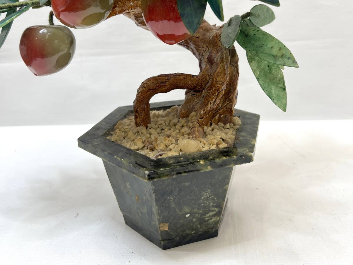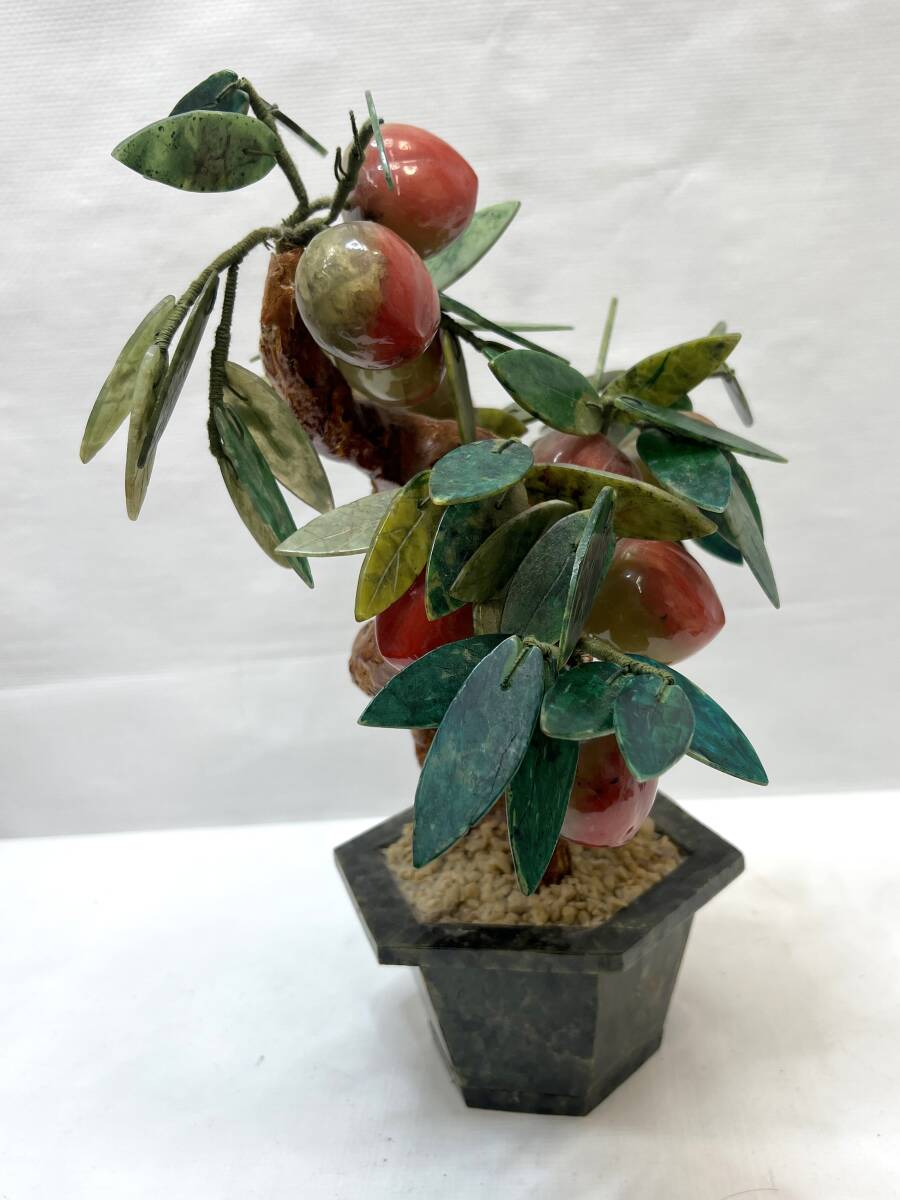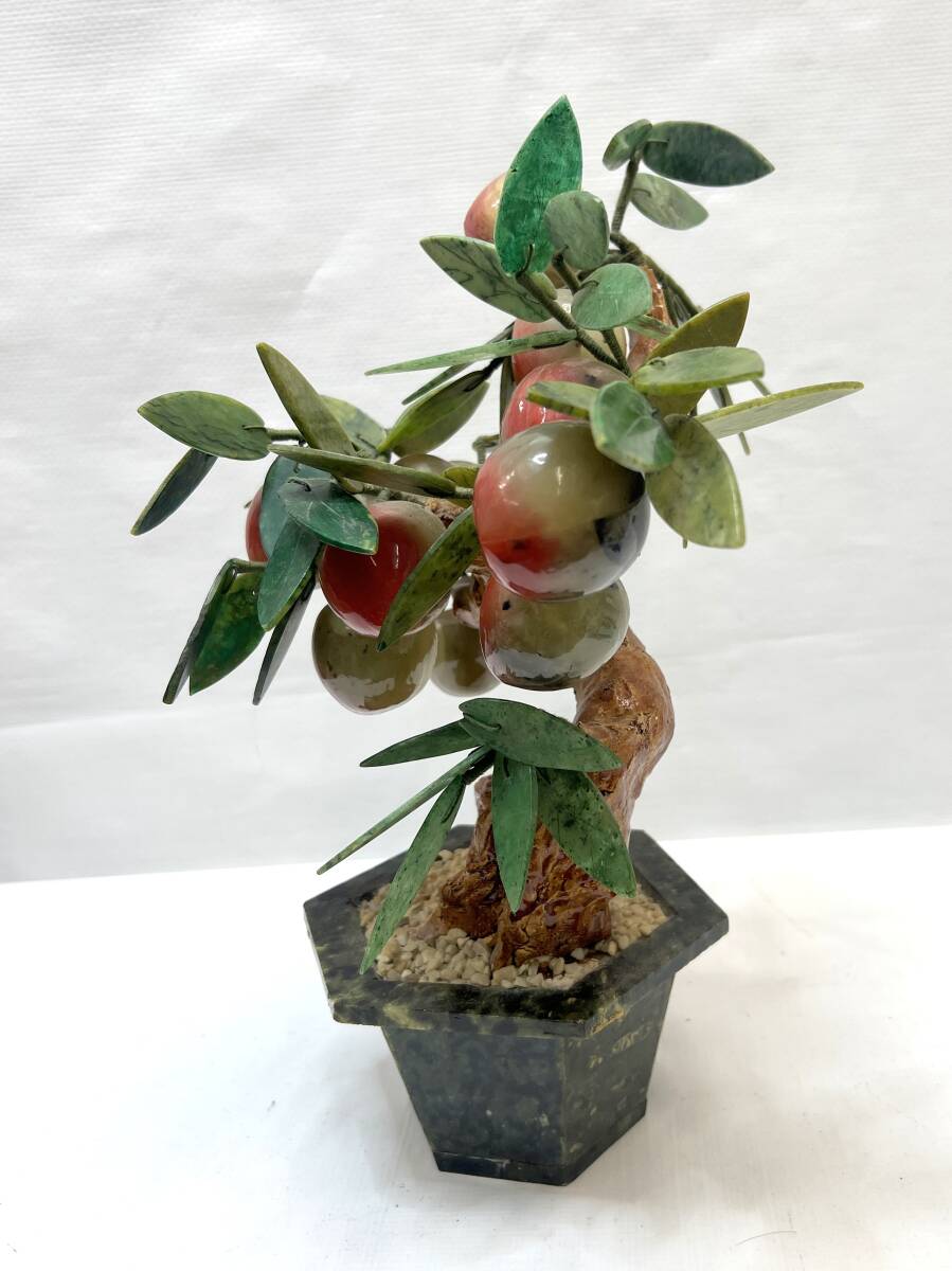 中国美術 翡翠 桃樹玉石 盆栽 高さ約40cm 重量約4.4kg 古玩 桃の木 石細工彫刻 縁起物 インテリア 置物 E