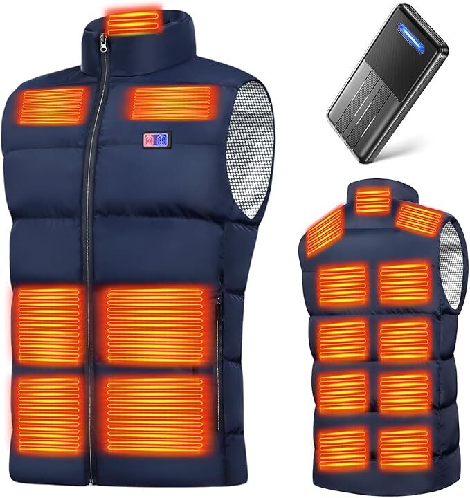 XLサイズ ブルー色 Yoigood 電熱ベスト 【40800mAh大容量バッテリー付き 17箇所発熱】 加熱ベスト 前後独立スイッチ