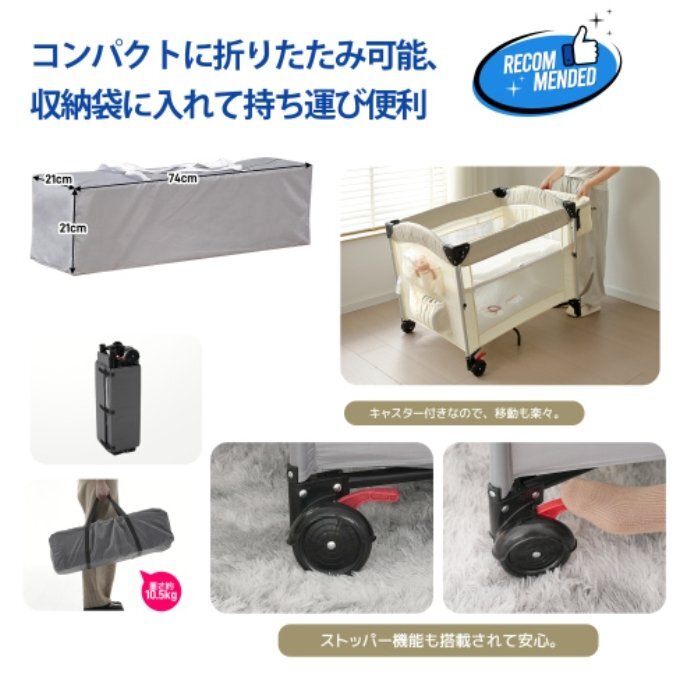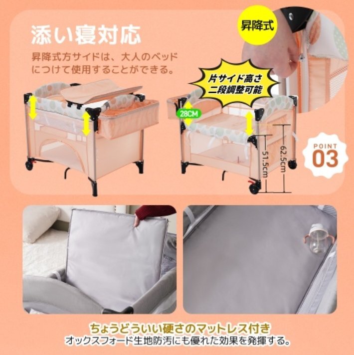 ベビーベッド ベビーサークル 折りたたみ 添い寝ベッド おむつ替えテーブル付 プレイヤード お昼寝マット キャリーバッグ付 マットレス付