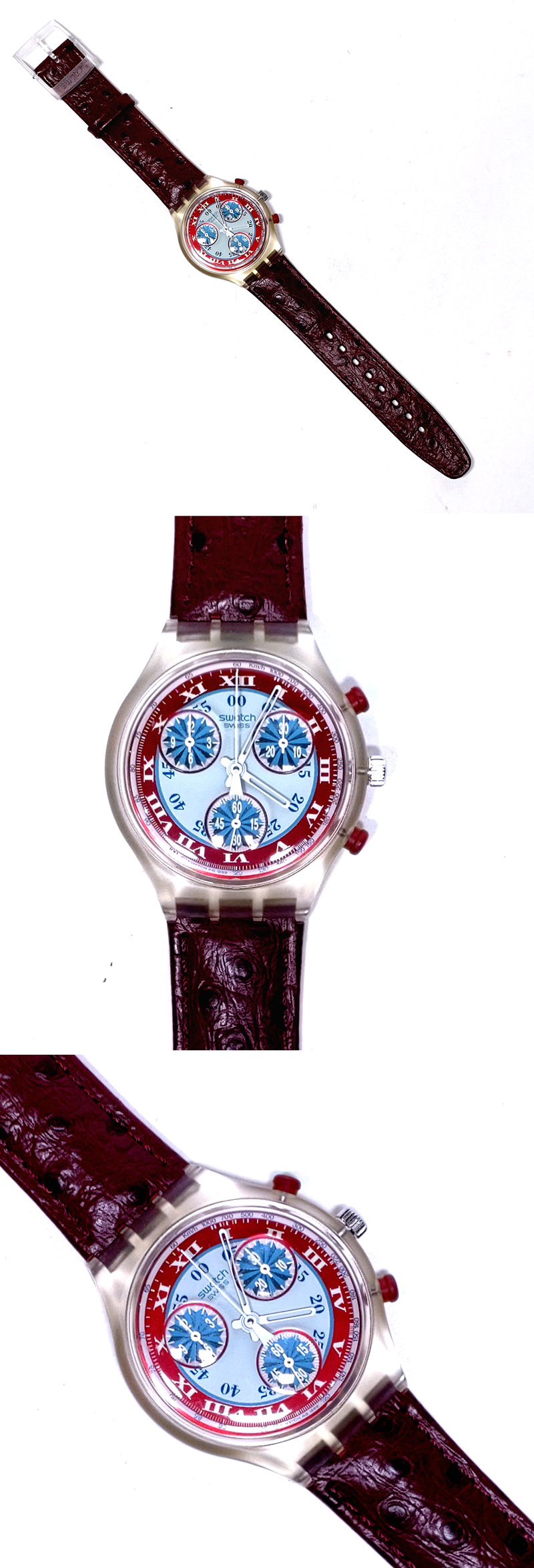 商品名 Swatch スウォッチ SCK103 ウィンドミル 90’s ヴィンテージ クロノグラフ クオーツ レザーベルト 腕時計 オリジナルケース付 未使用品 電池切れ 動作未確認