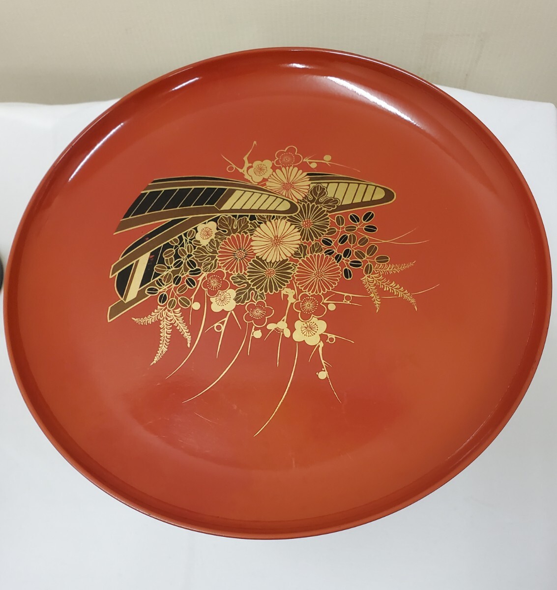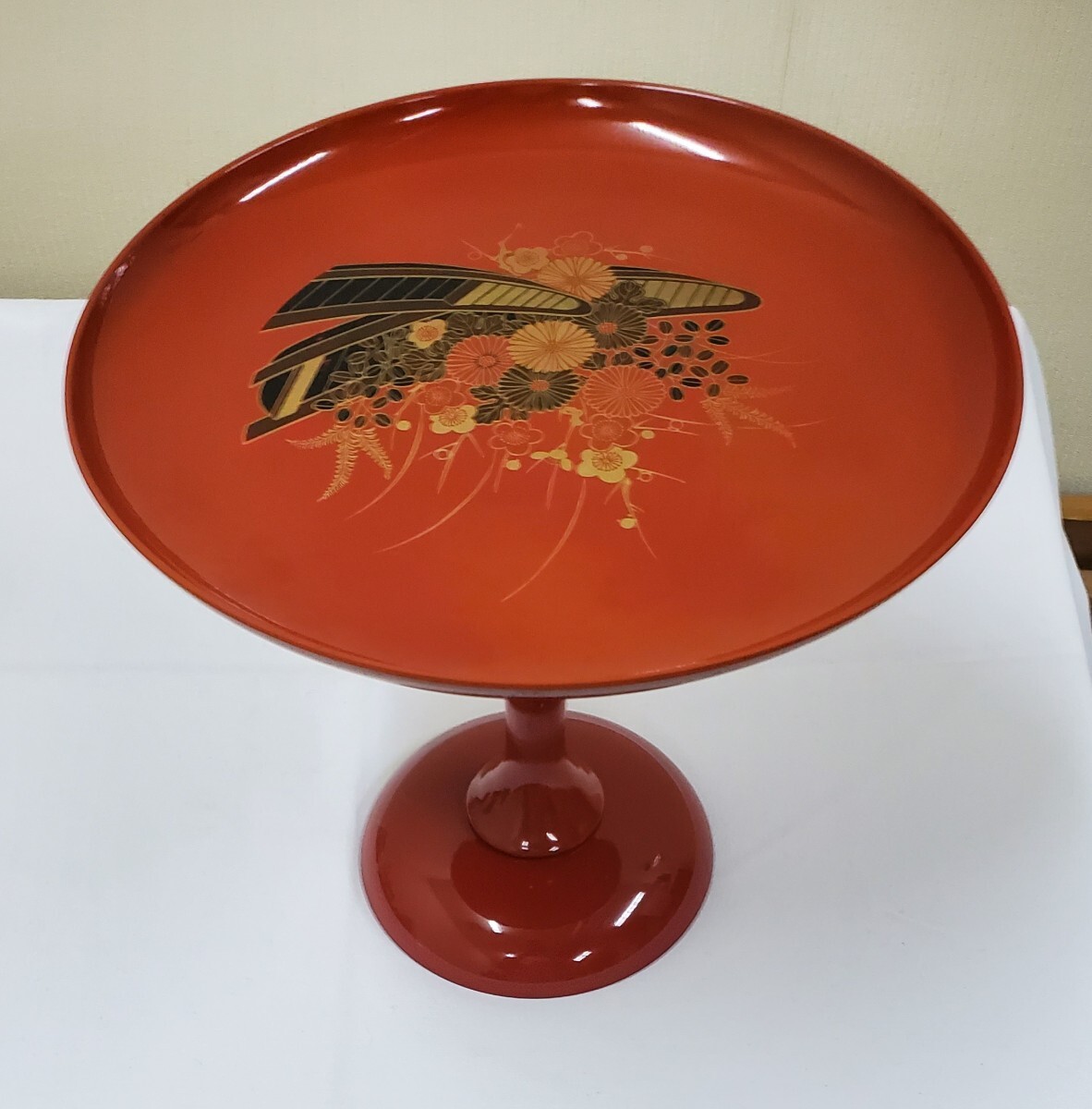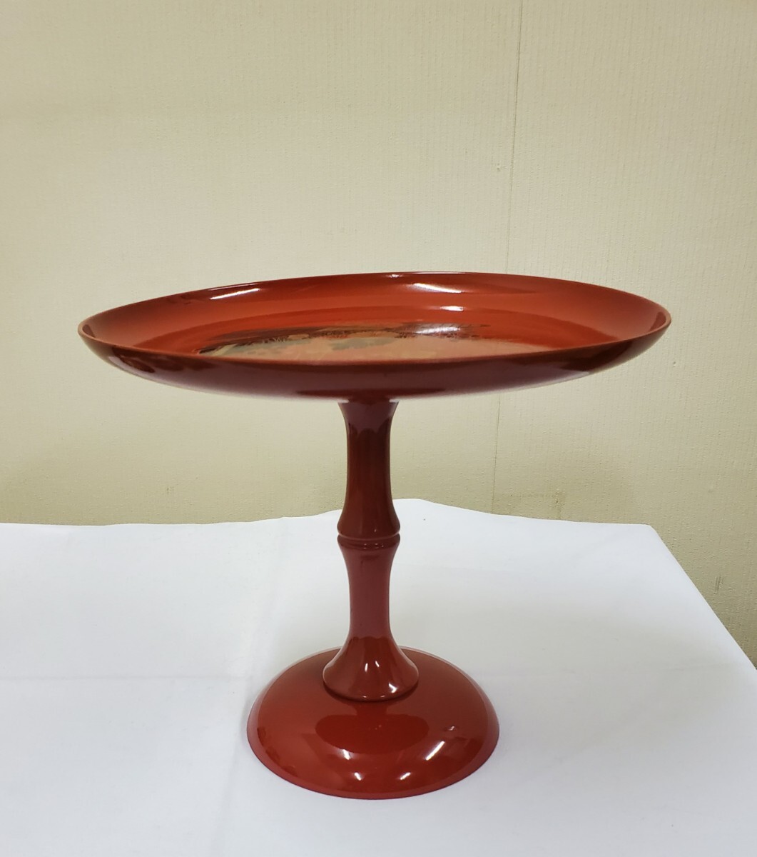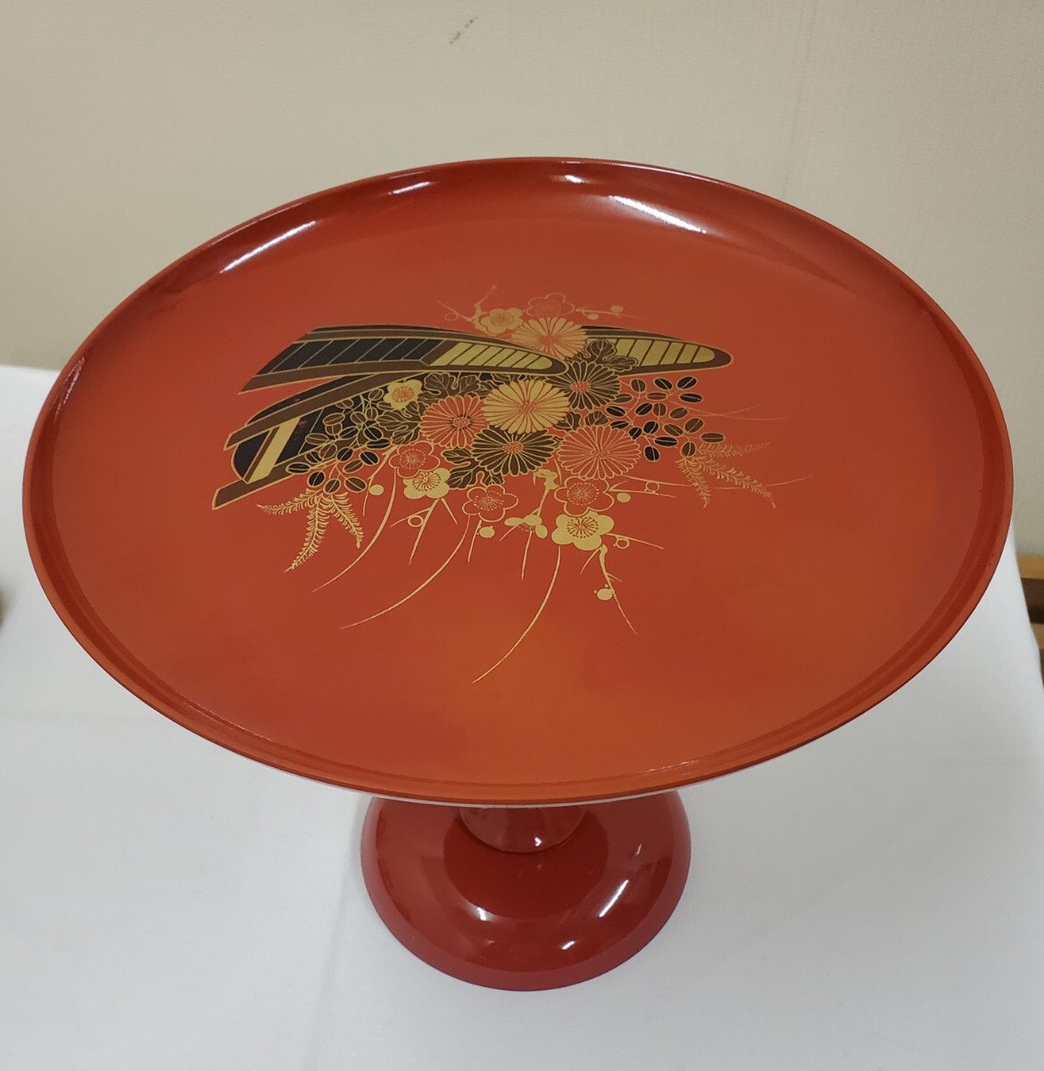 ◎ 高杯(たかつき)は、高く脚のついた丸いお皿で、ひな人形に供えるお菓子や食べ物を置くための器です。