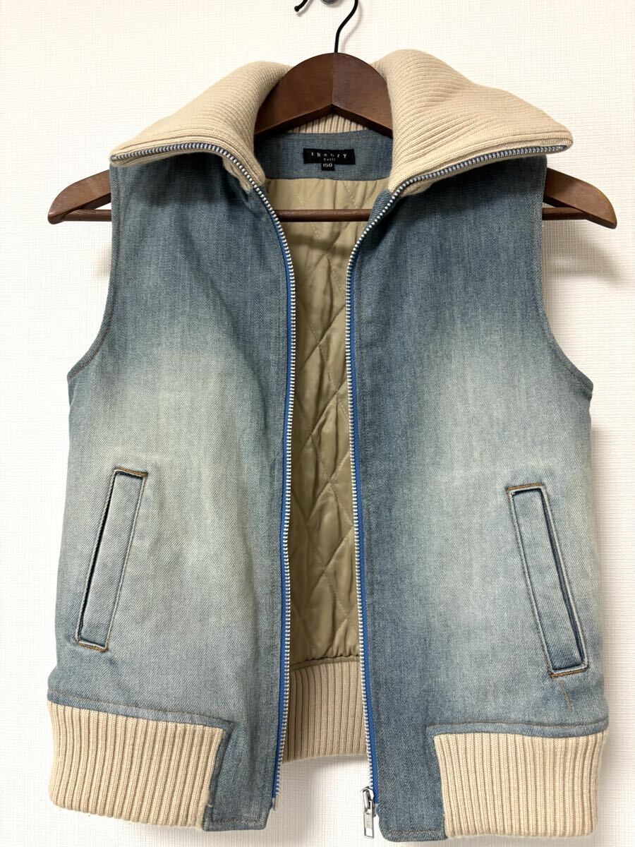 theory petitのデニムのグラデーションとリブニットのコンビのベストです。