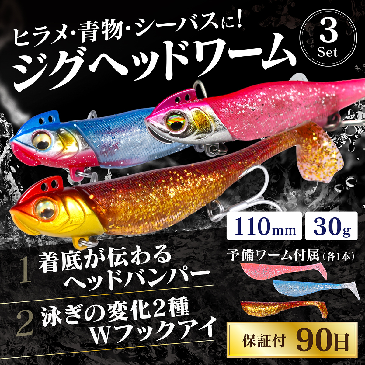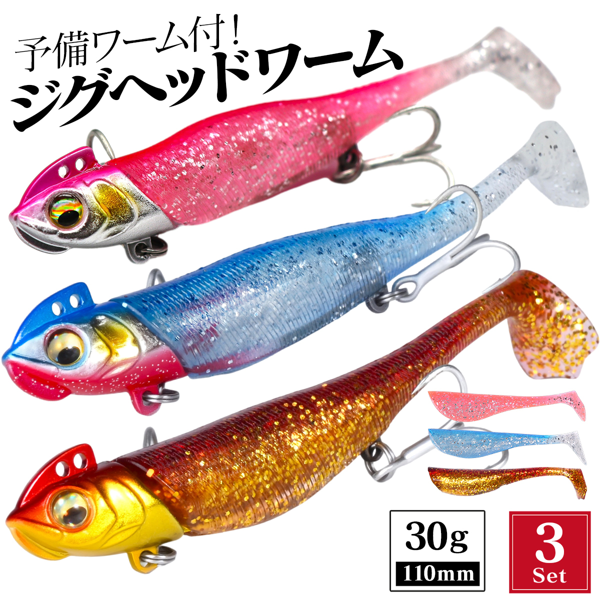 セット数:ジグヘッド3個+ワーム6個