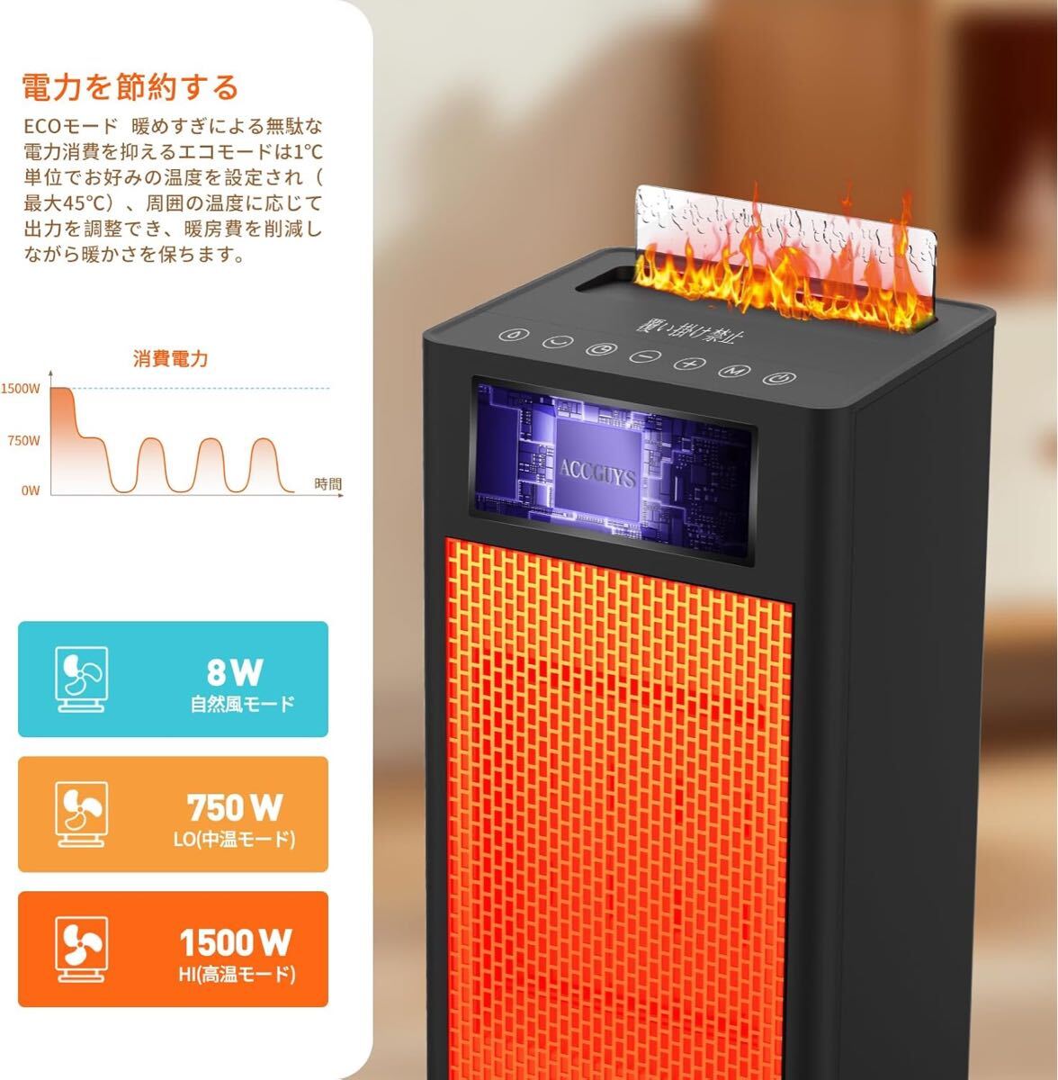 【人感センサー&ECO知能恒温技術&3段階送風 ヒーター】セラミックヒーターは人の動きを感知して自動でON/OFFする人感センサーモードがあり、製品から約5mの範囲(上下/左右90°)で人やペットの動きを感知して自動稼動します。ヒーターから出てくる温風が細かいに調節可能、お好みの温度に合わせて、15℃~45℃まで無階段での設定が可能。送風(8W)、弱温風(700W)、強温風(1500W)三つのモードが切り替え可能。左右自動度首振り、大風量立体送風、従来品の電気ファンヒーターと比べで送風範囲さらにアップします。