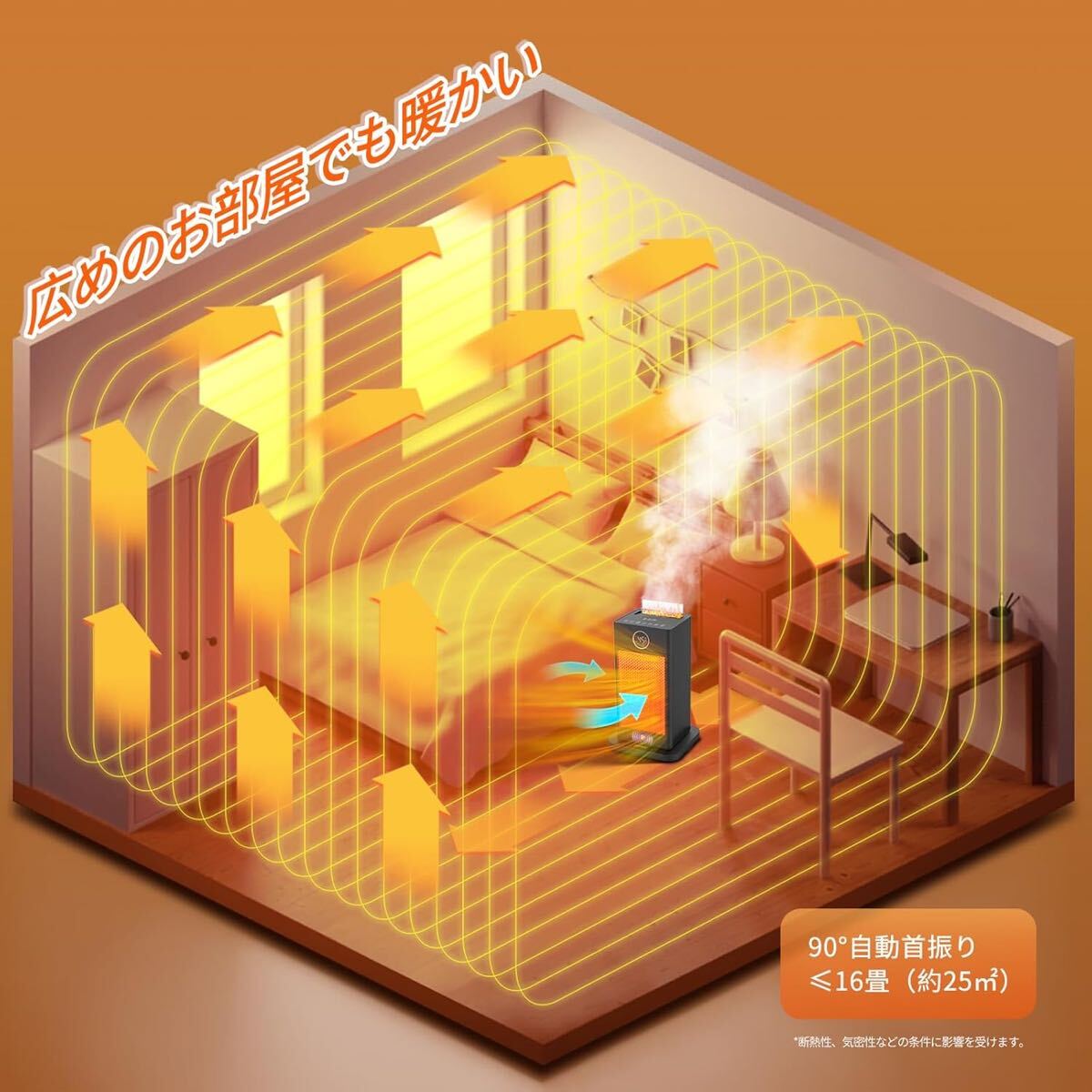 【速暖型超音波加湿器&グラフェン技術加熱】暖房と加湿の併用も可能で、部屋の隅々まで温もりと潤いを届けます。本製品はグラフェン技術を採用し、タービン空気対流なのでヒーターのスイッチを入れてからすぐに熱風が出ます。待ち時間なしですぐに暖かな風が出ますので朝の忙しいときの身支度、帰宅した直後などで、すぐに手や足を暖まりたいというときにもピッタリです。