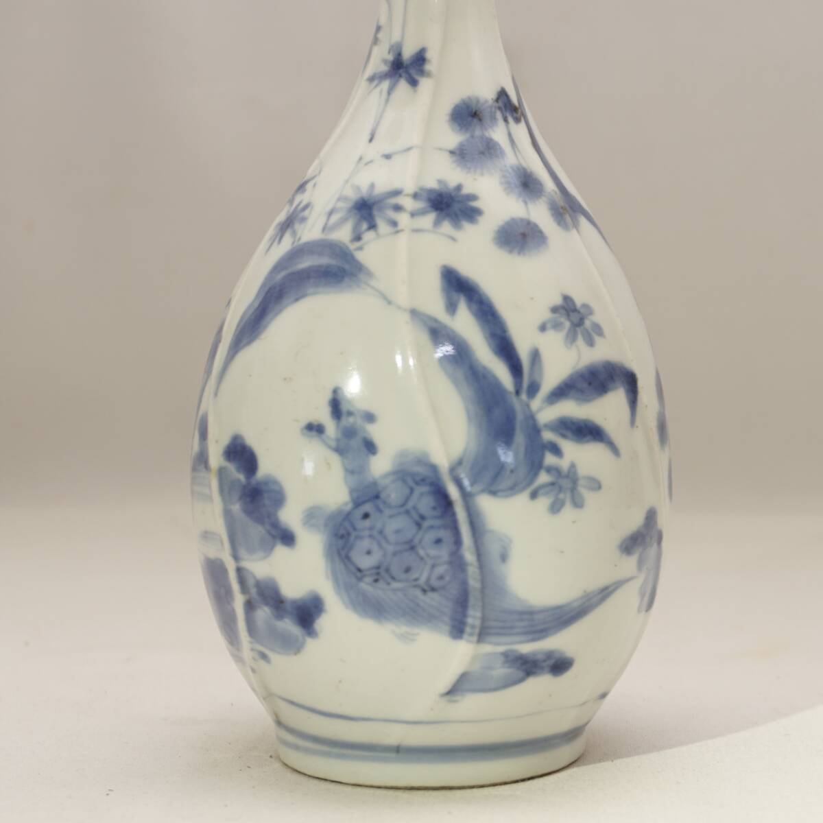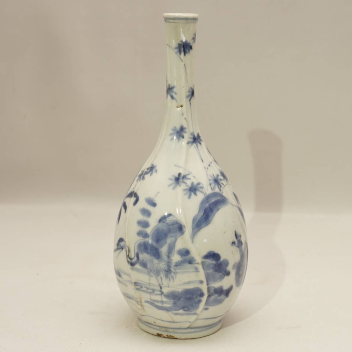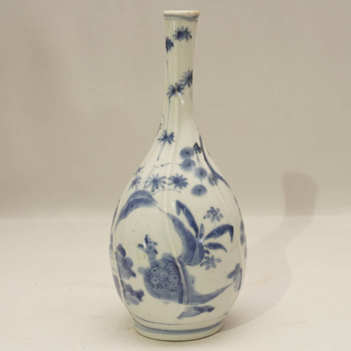 『 初期伊万里 鶴亀図 染付 鶴首 花瓶 ( 高さ20.7cm ) 』 検索 : 伊万里 九谷 有田 薩摩 鍋島 染付 金蘭手