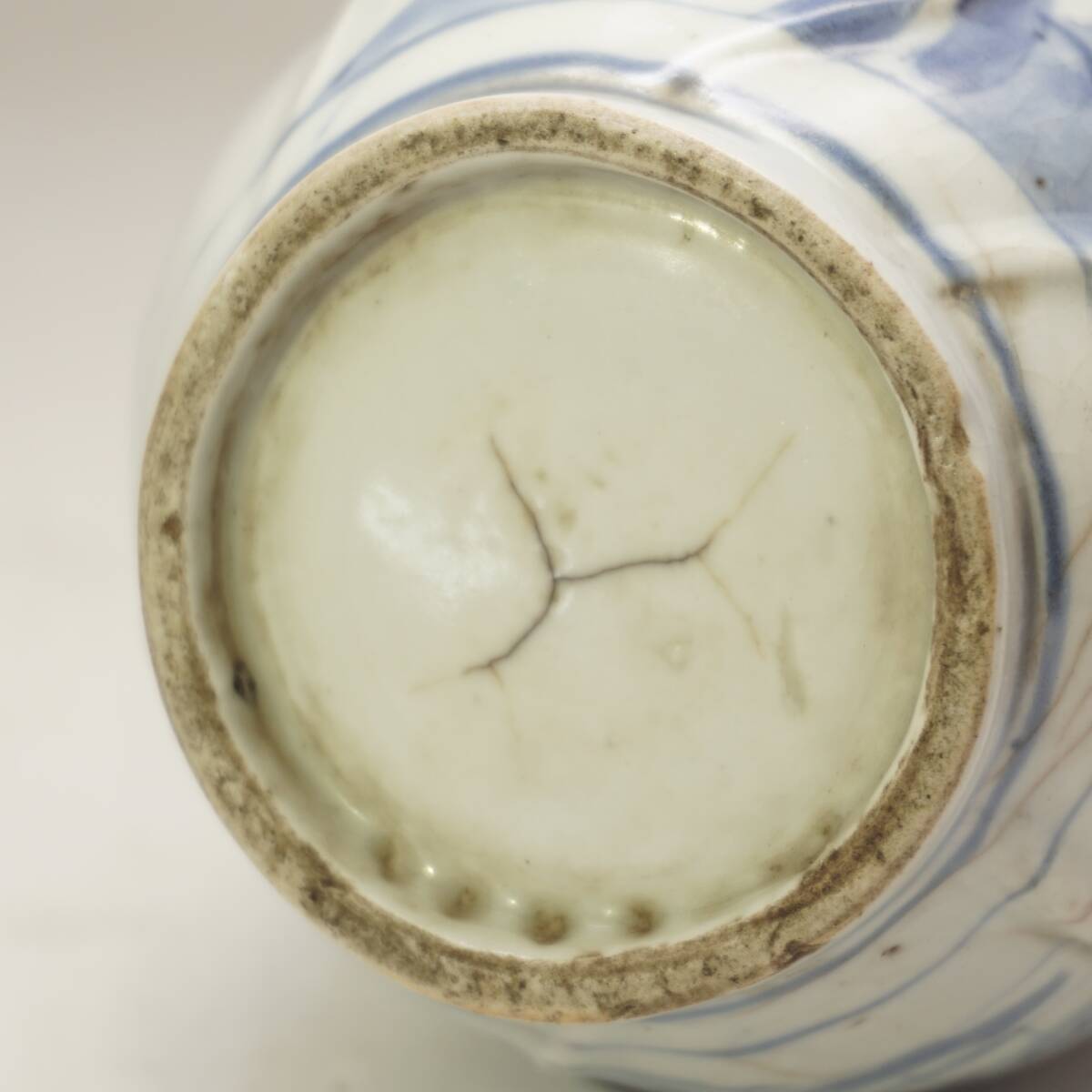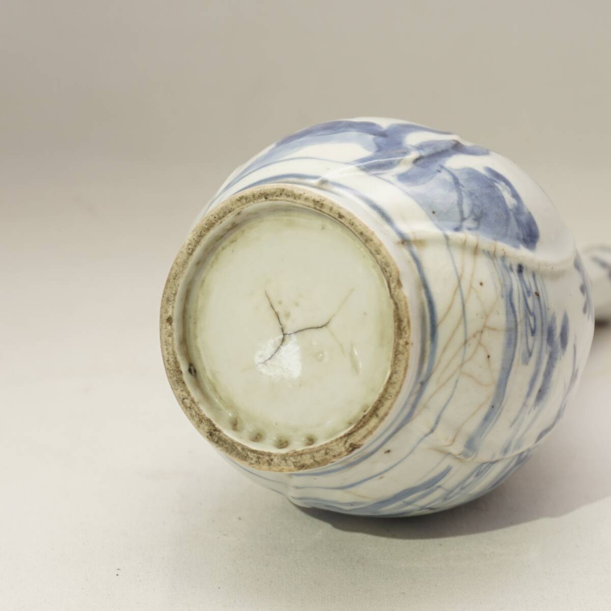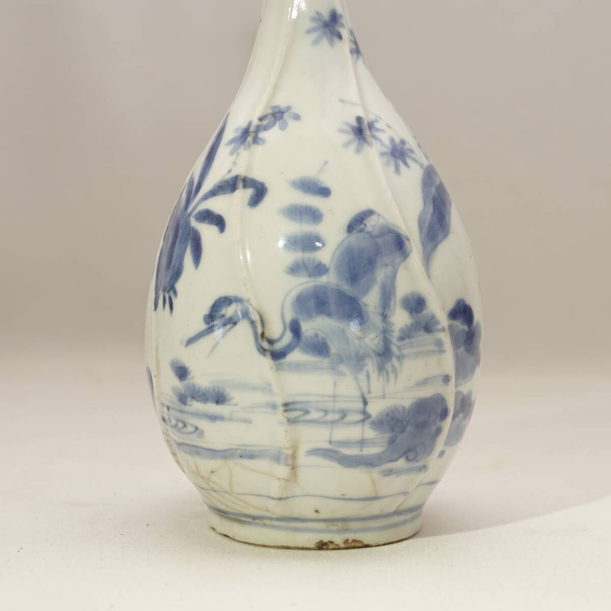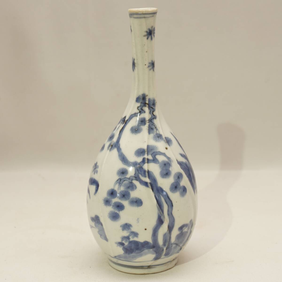 『 初期伊万里 鶴亀図 染付 鶴首 花瓶 ( 高さ20.7cm ) 』 検索 : 伊万里 九谷 有田 薩摩 鍋島 染付 金蘭手