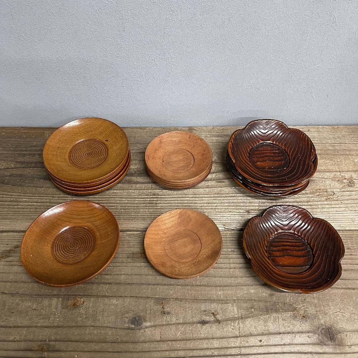 中古 茶托 無垢 木工 木工工芸 お茶 煎茶 コースター 17枚 花型7枚 他5枚ずつ
