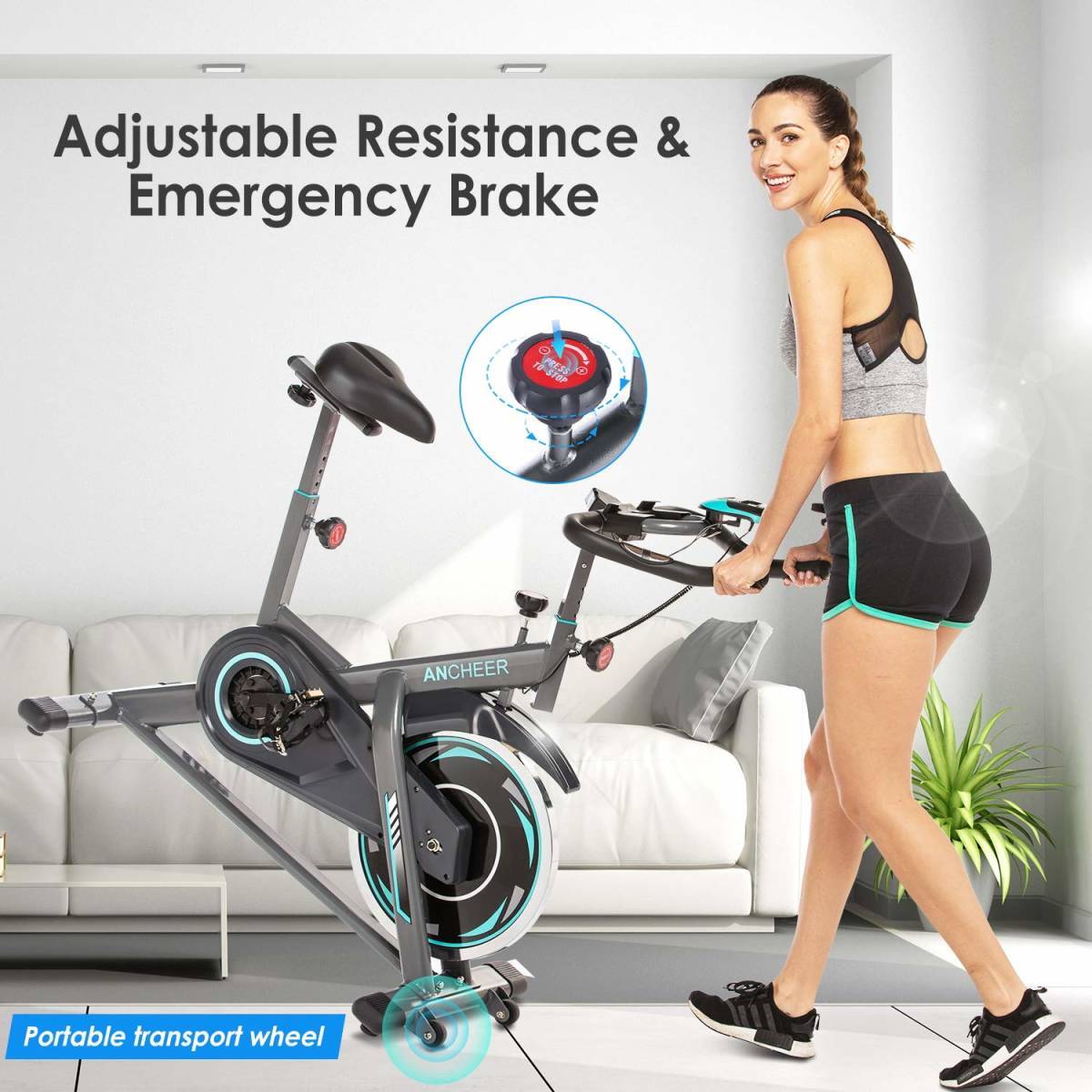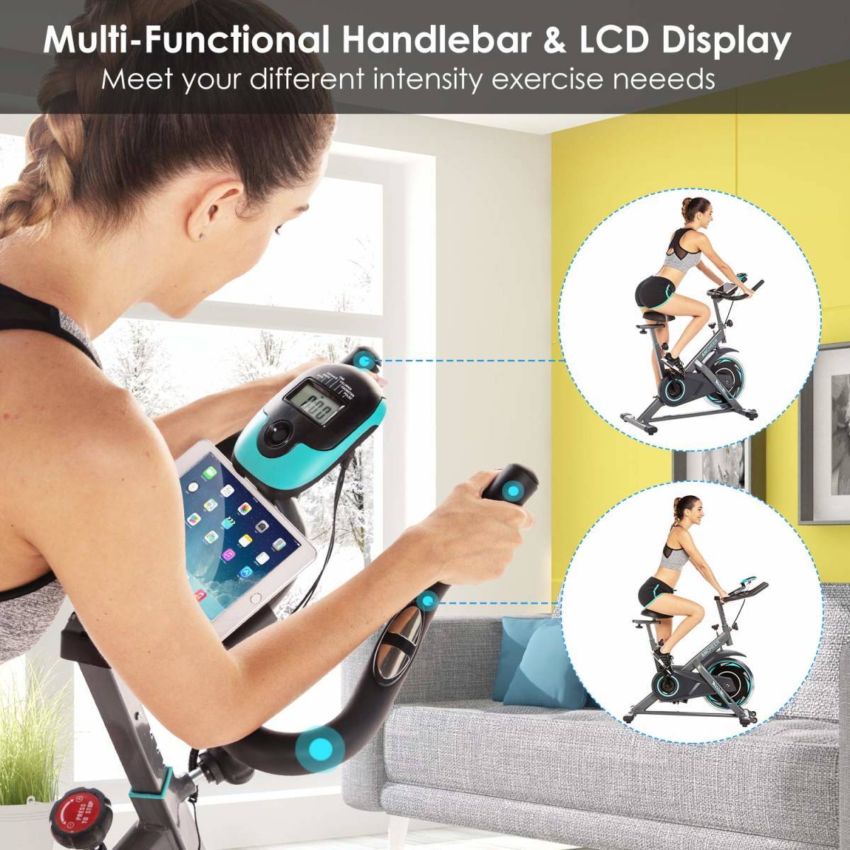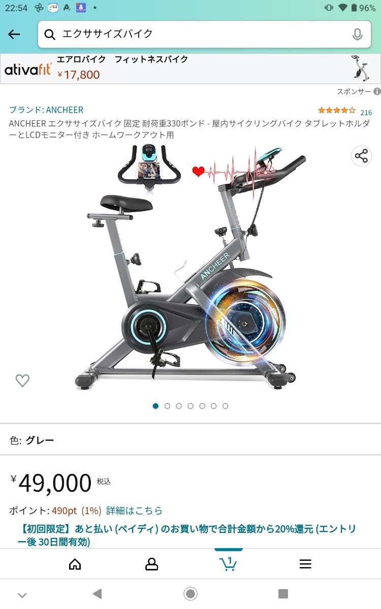 【新品☆在庫処分】ANCHEER エクササイズバイク 固定 耐荷重330ポンド - 屋内サイクリングバイク タブレットホルダーとLCDモニター付き