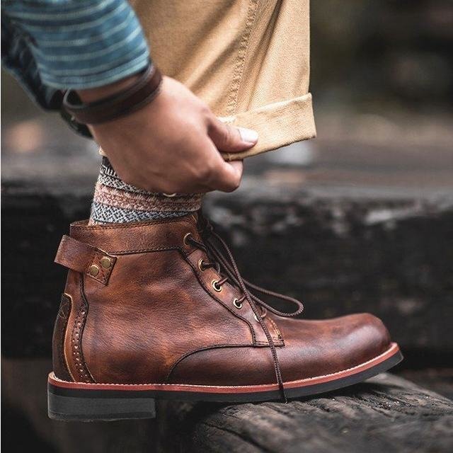 ブーツ メンズブーツ シューズ ワークブーツ バイクブーツ  レザー靴 ライダース ハイカット ミリタリー カジュアル ブラウン 27cm