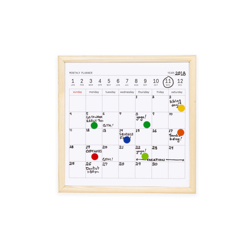 キッカーランド ホワイトボード カレンダー Sサイズ KMH76S Kikkerland 壁掛け 予定表 月間予定表 冷蔵庫 おしゃれ 軽量 a4 スモール 万年 マグネット対応 子供 スケジュール かわいい 木枠 White Board Calendar S