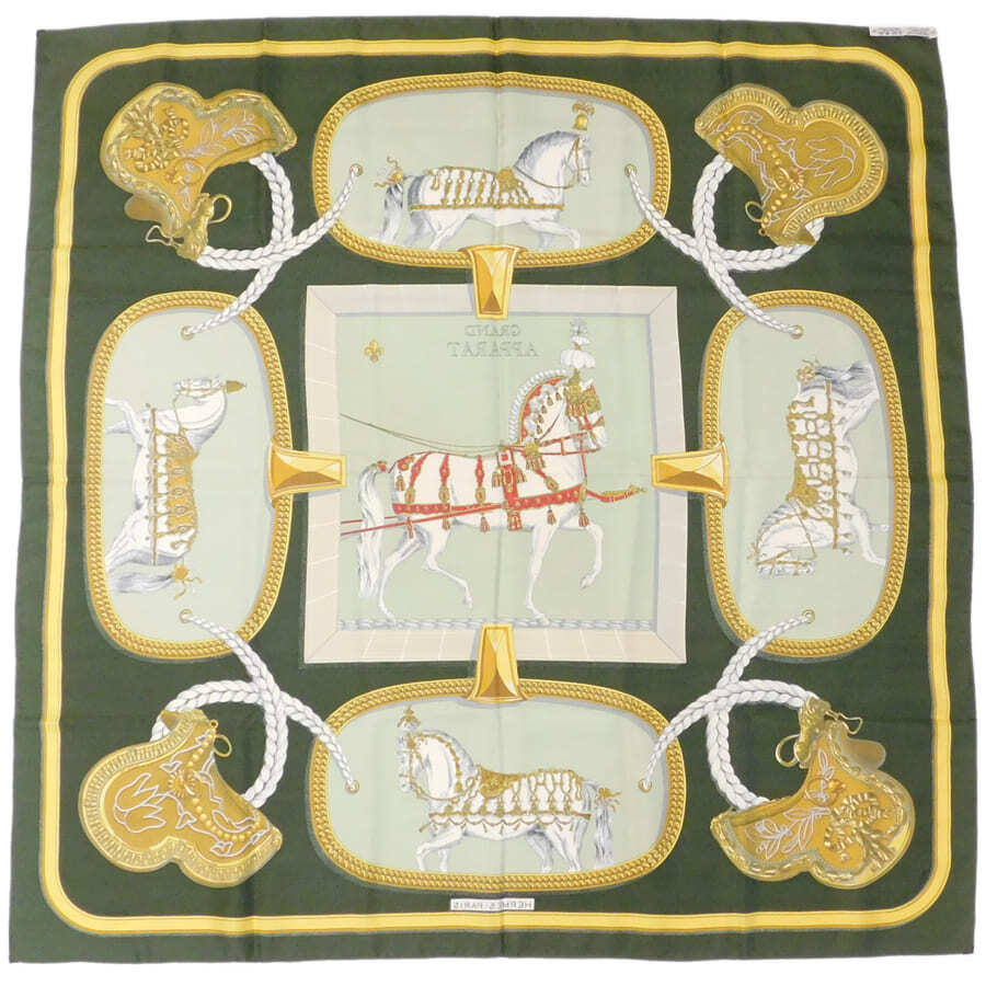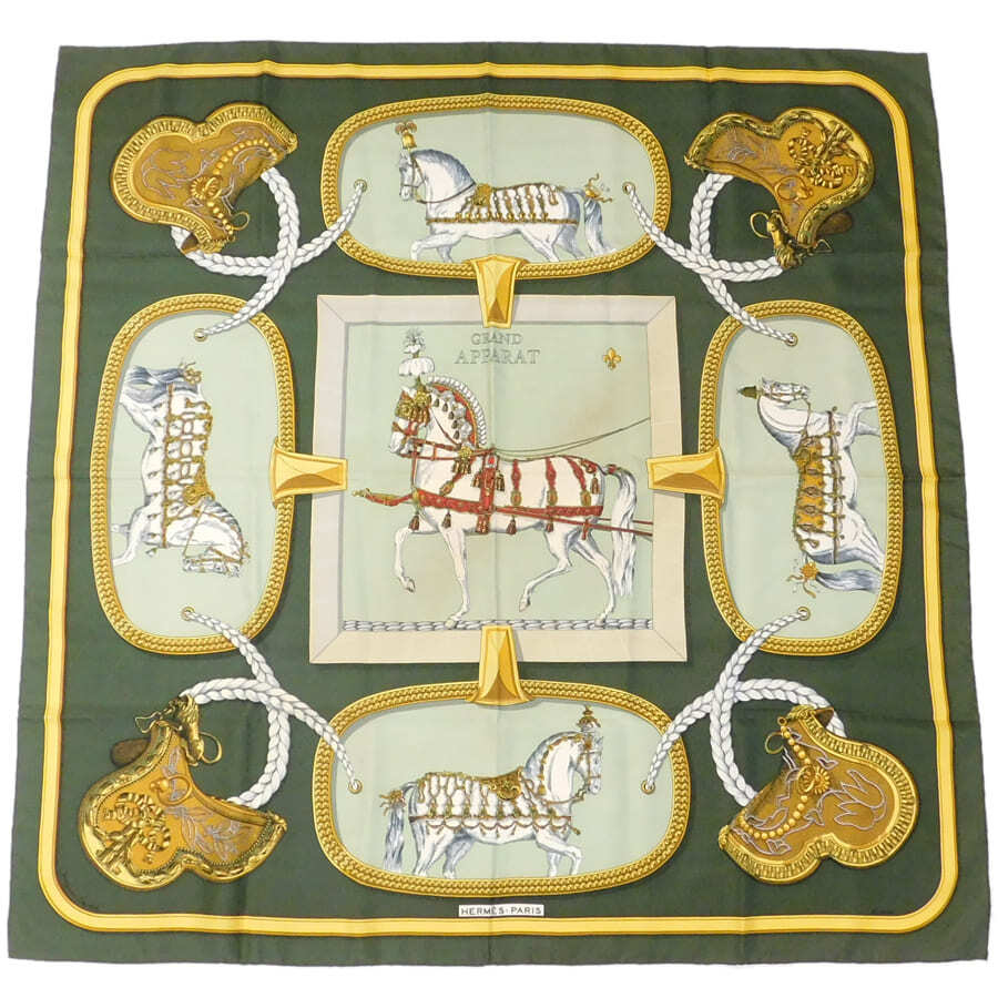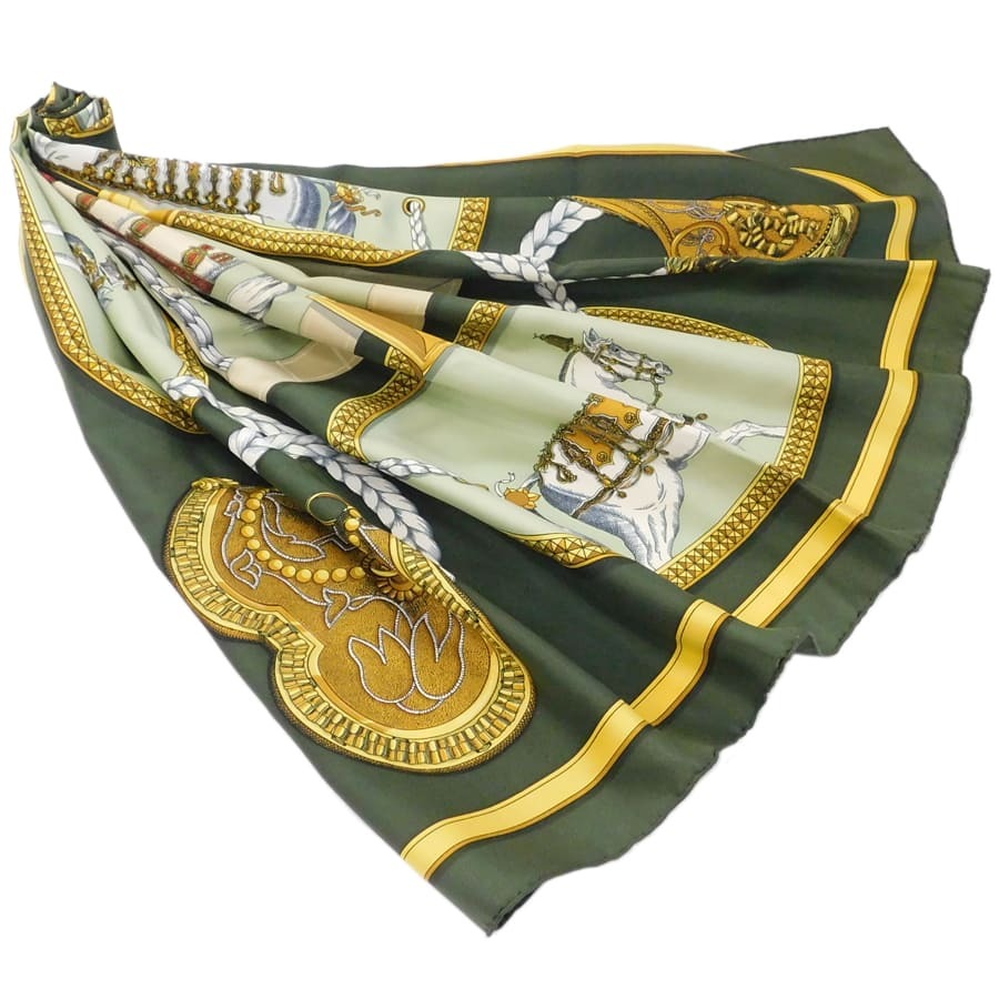 1円■エルメス/スカーフ/グリーン系/シルク/カレ90/お洒落/お出掛け/HERMES ■E.Brg.Tyb-31[中古]