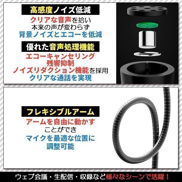 高感度ノイズリダクションコンデンサーマイク採用でグースネックのデザイン、360°全方位集音で声を漏れなく集めます。